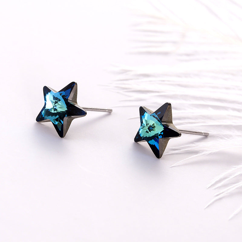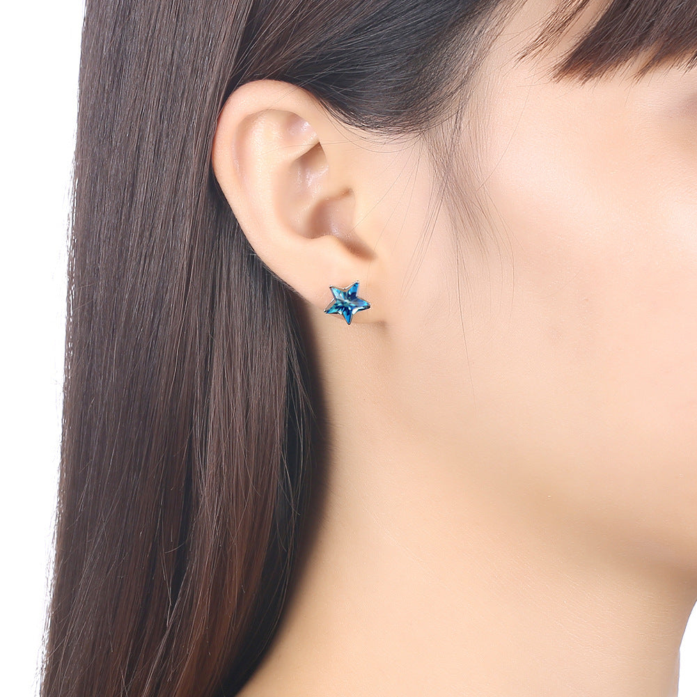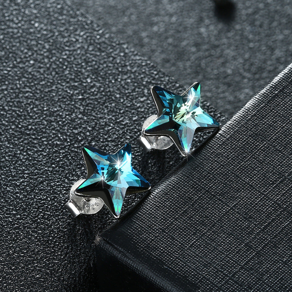 Rockyu ピアス レディース スターカット スワロフスキークリスタル使用 925シルバー製 小ぶりスタッド