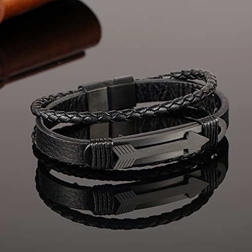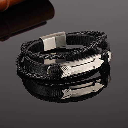 Rockyu が贈る本革多重ブレスレットは、矢印モチーフをあしらった存在感のあるデザイン。ブラックレザーの編み込みとメタルパーツの組み合わせが、男らしさと洗練を両立させています。矢印は「前進」や「目標達成」のシンボルとしても人気があり、身につけることでポジティブな印象を与えてくれるアイテム。シルバーとゴールドの2カラー展開で、カジュアルからストリート、アジアンエスニックなコーデまで幅広くマッチします。Rockyu の多重レザーブレスレットは、手元にボリューム感を加えつつ、スタイリッシュに演出。普段使いはもちろん、プレゼントにも最適なファッションアクセサリーです。