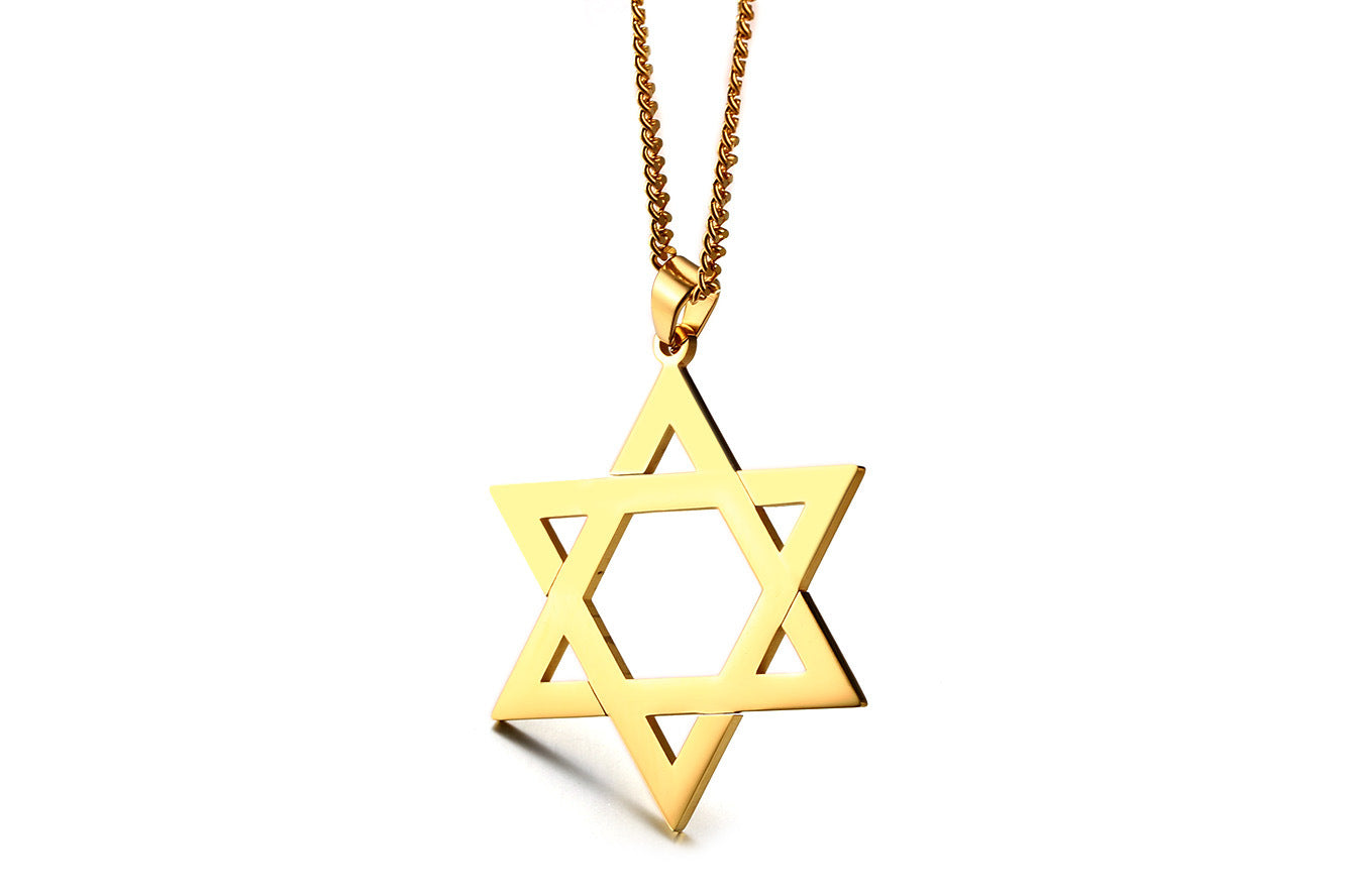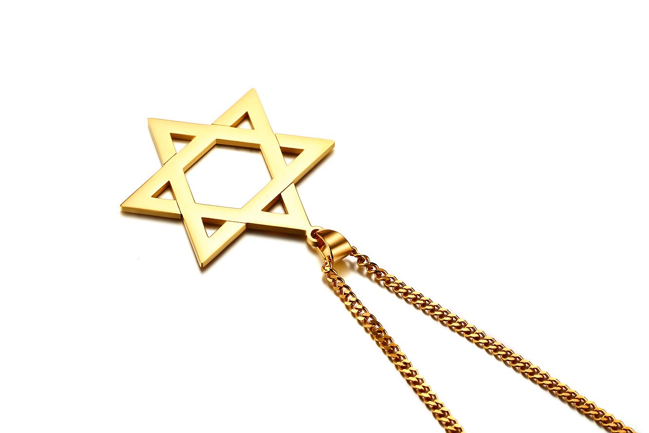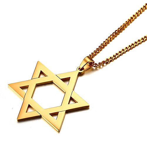 Rockyu 六芒星ネックレス メンズ ゴールド ダビデの星 ペンダント 316Lステンレス製 お守り アクセサリー