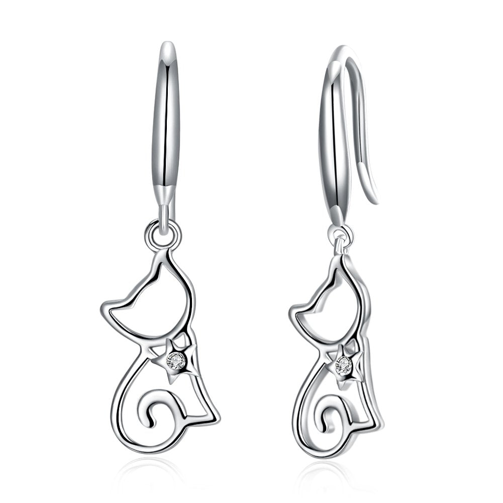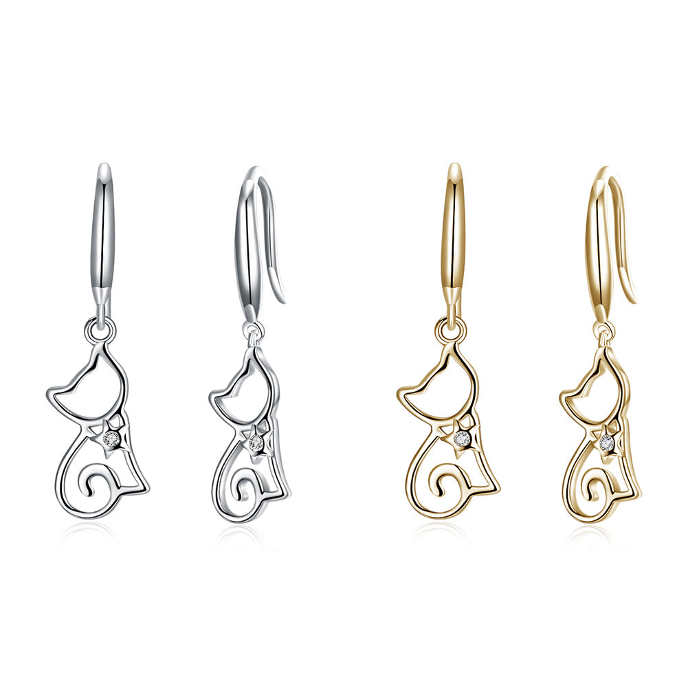 Rockyu 猫モチーフ シルバー925 フックピアス|キュートで軽やかなレディースアクセ