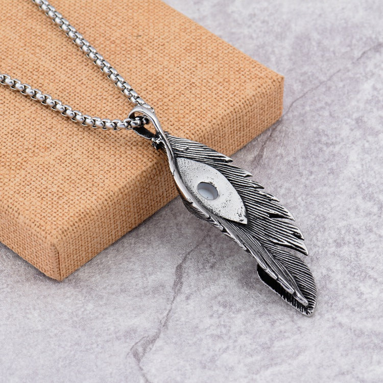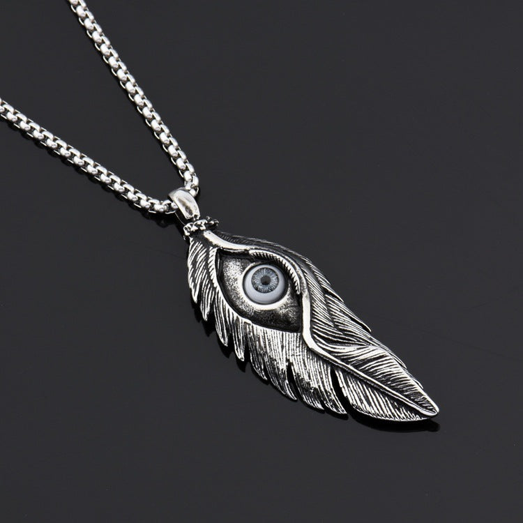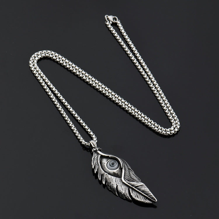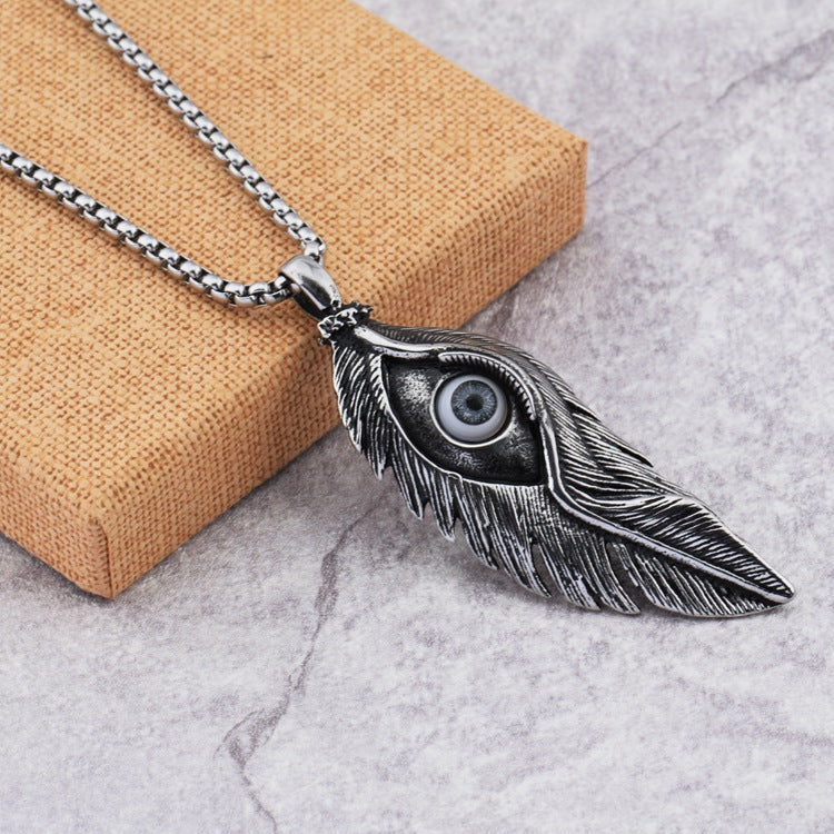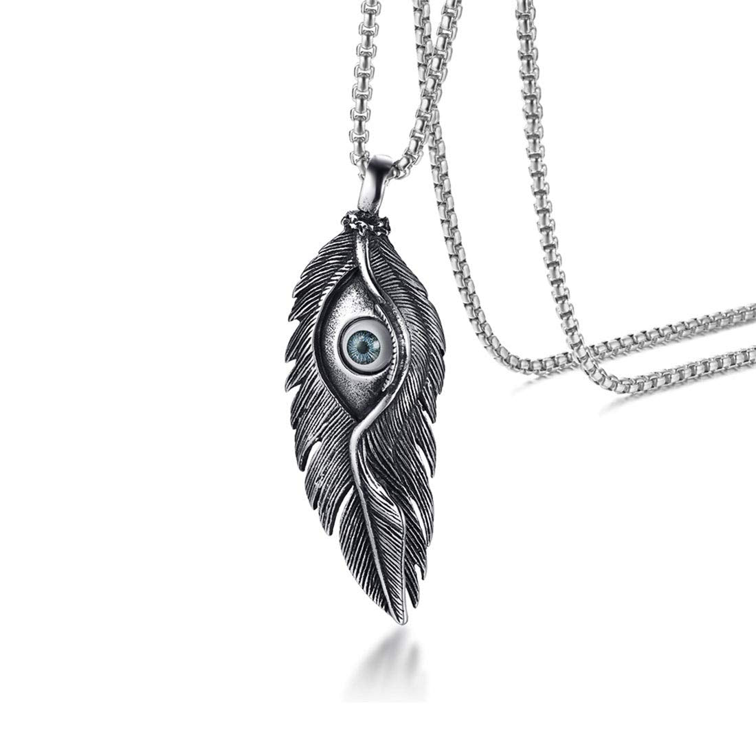 Rockyu メンズ ネックレス ペンダント 羽 根 アイモチーフ チタン ステンレス レトロ アンティーク風