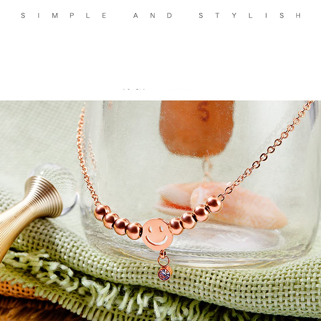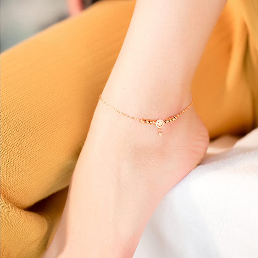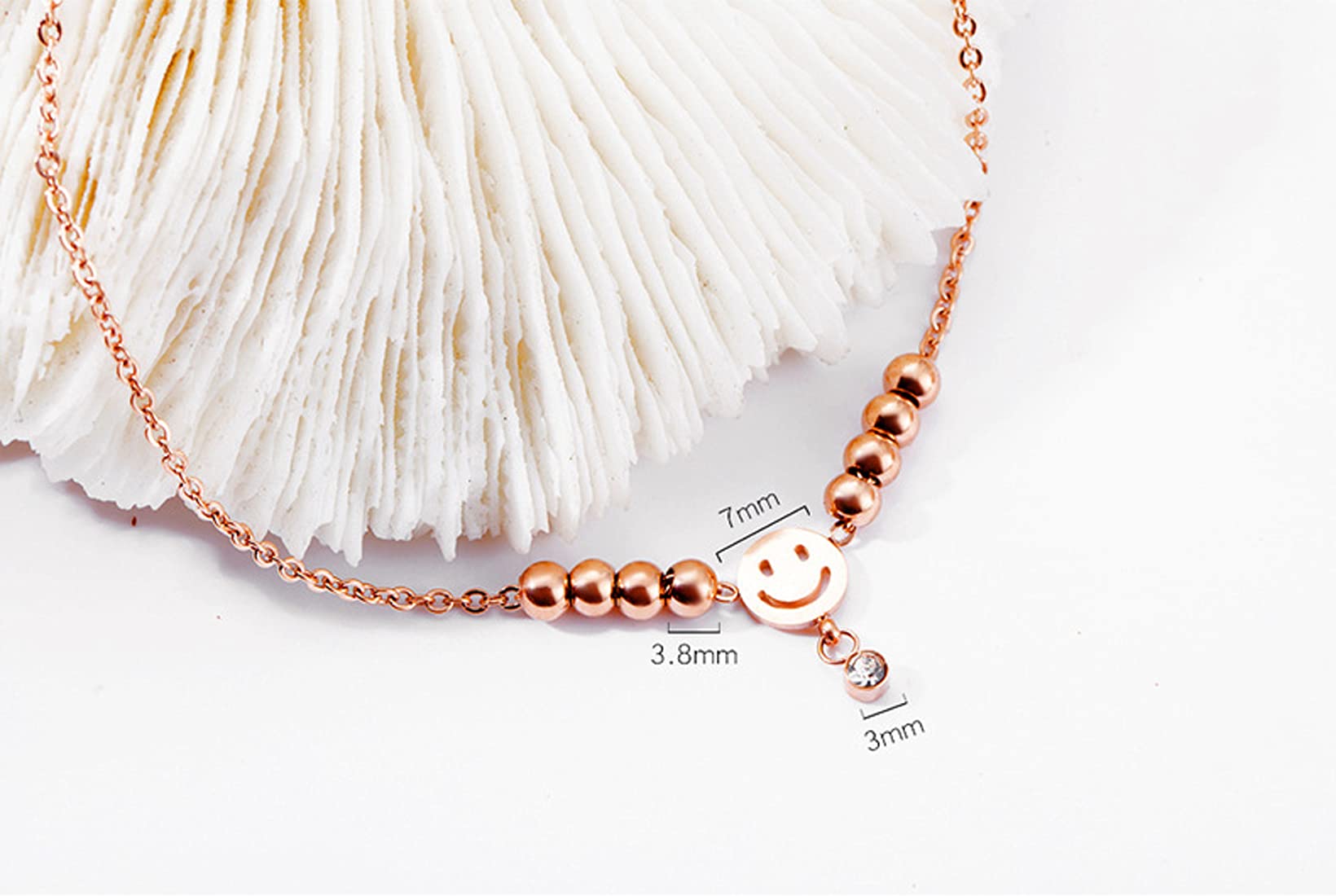 Rockyu アンクレット レディース スマイルビーズ チェーン チタン製 ハワイアン風GZ053-0-OPK
