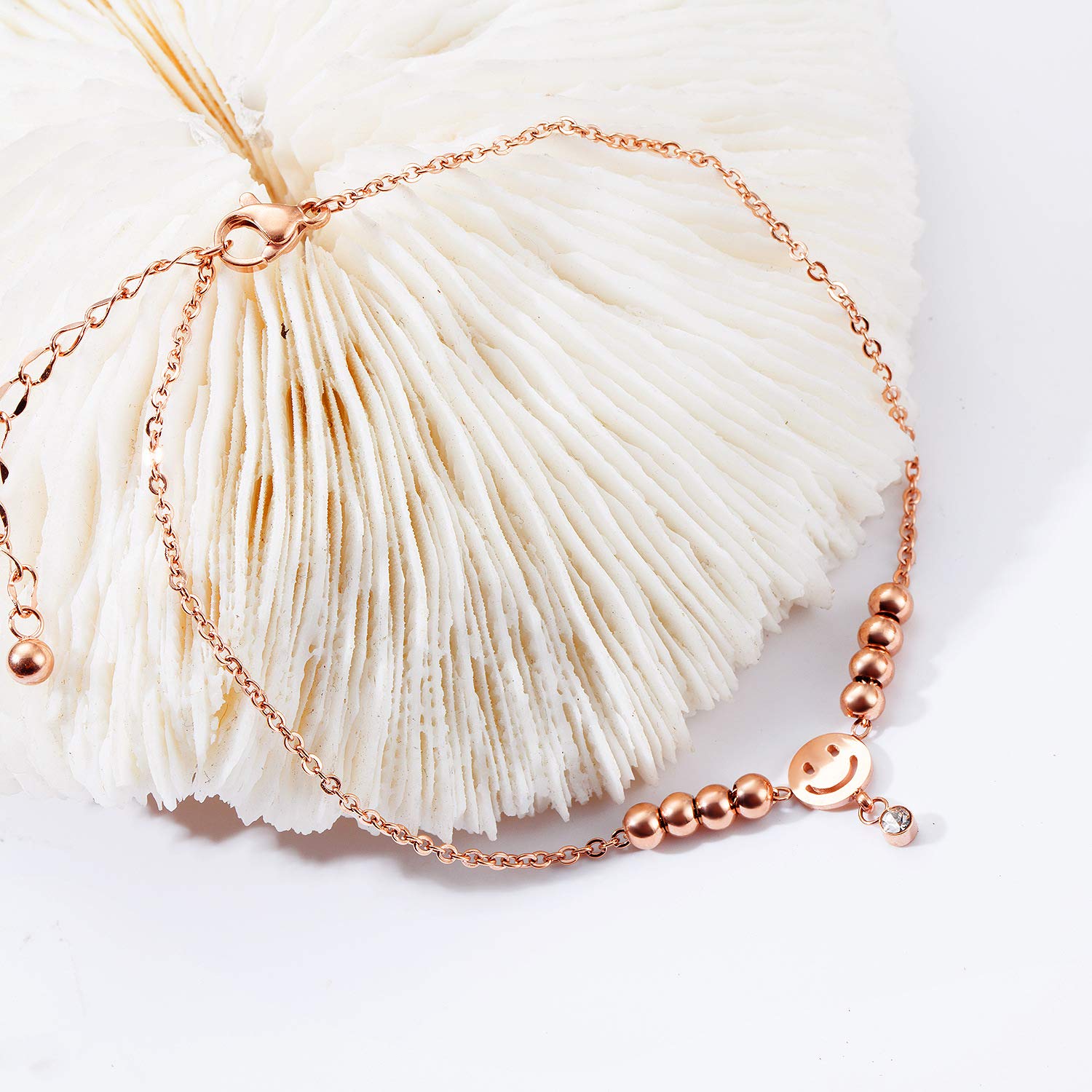 Rockyu アンクレット レディース スマイルビーズ チェーン チタン製 ハワイアン風