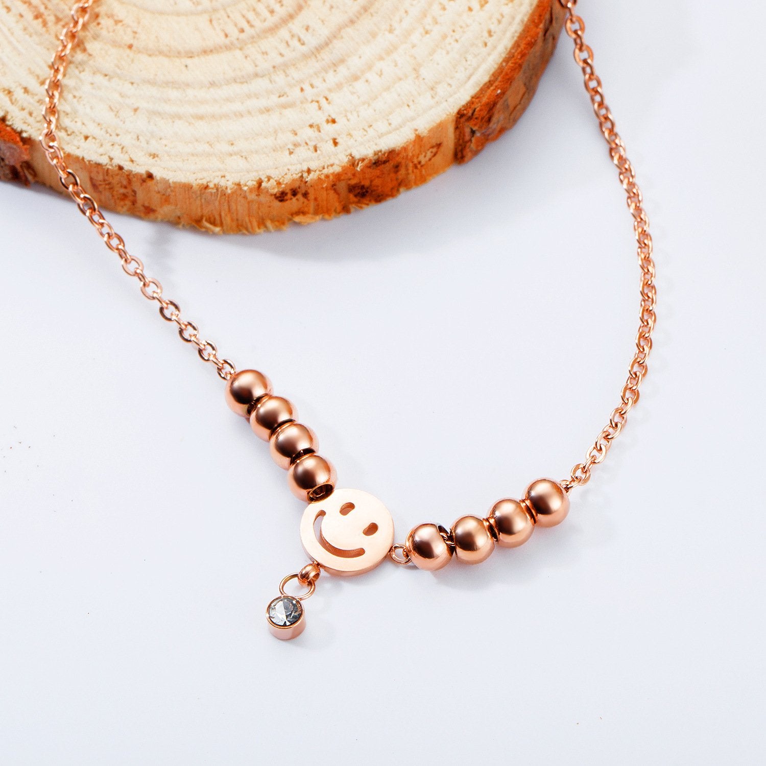 毎日の足元に、さりげない笑顔を──Rockyuのスマイルビーズアンクレットは、見るたび気分が上がるチャーミングなデザイン。小さなスマイルモチーフにきらりと輝くストーンを添え、ビーズと極細チェーンで軽やかに仕上げました。