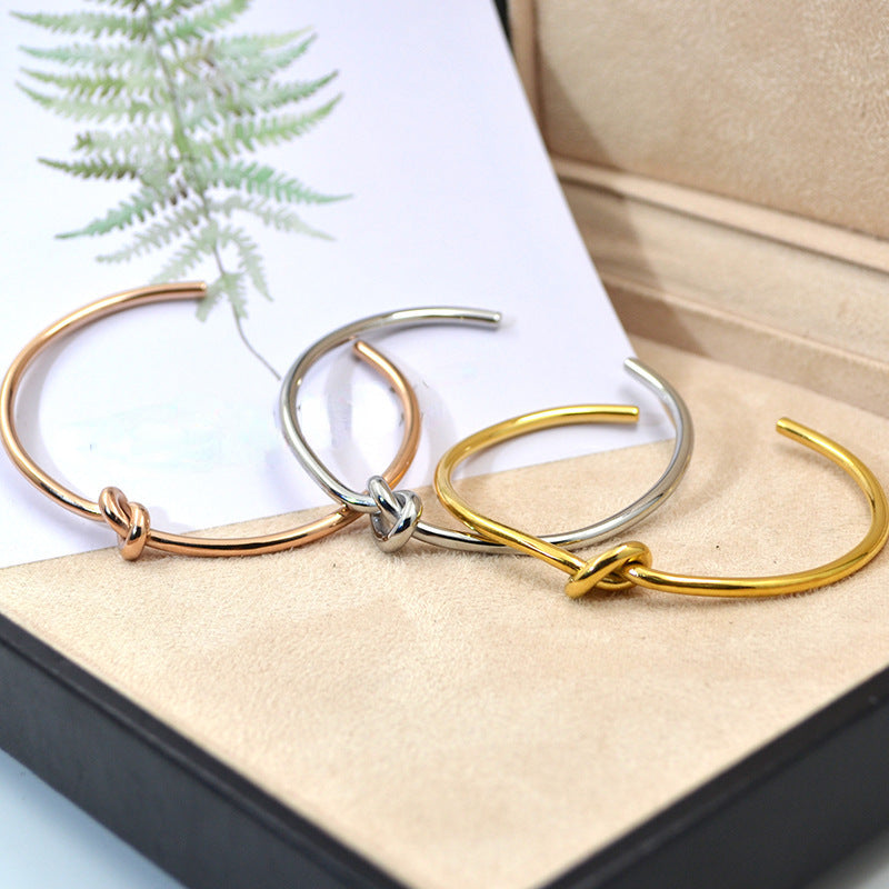Rockyu ステンレス バングル レディース 結びデザイン ニューヨークスタイル シンプル