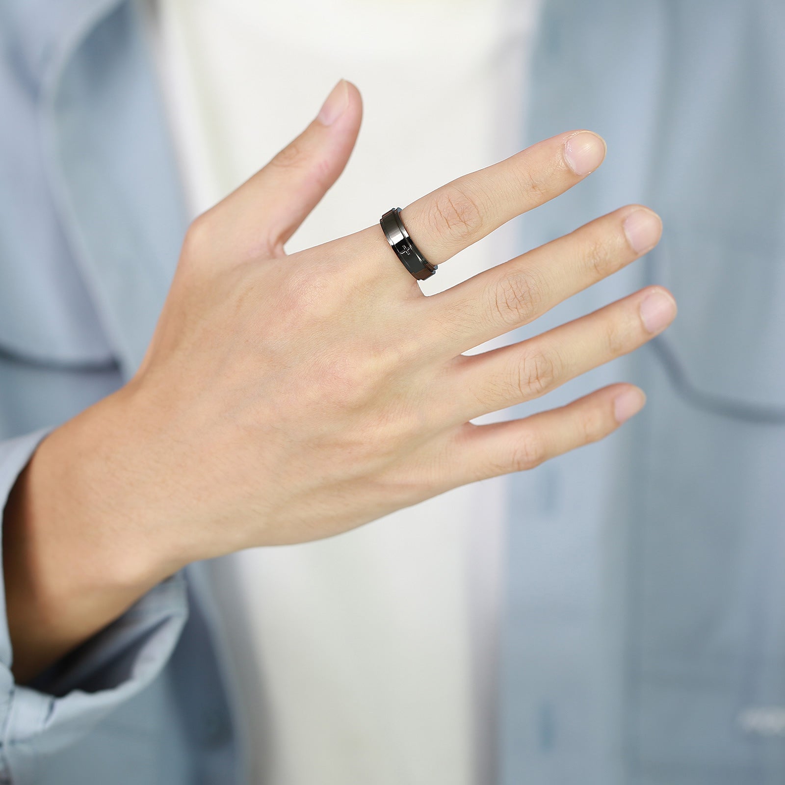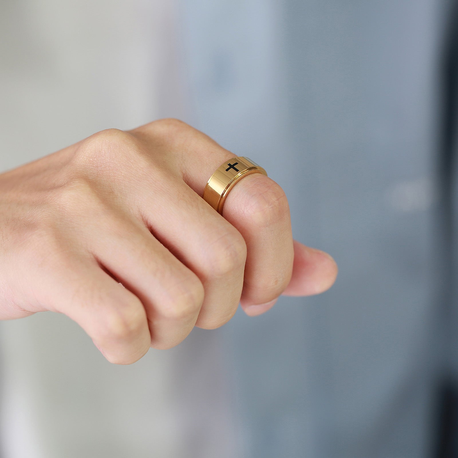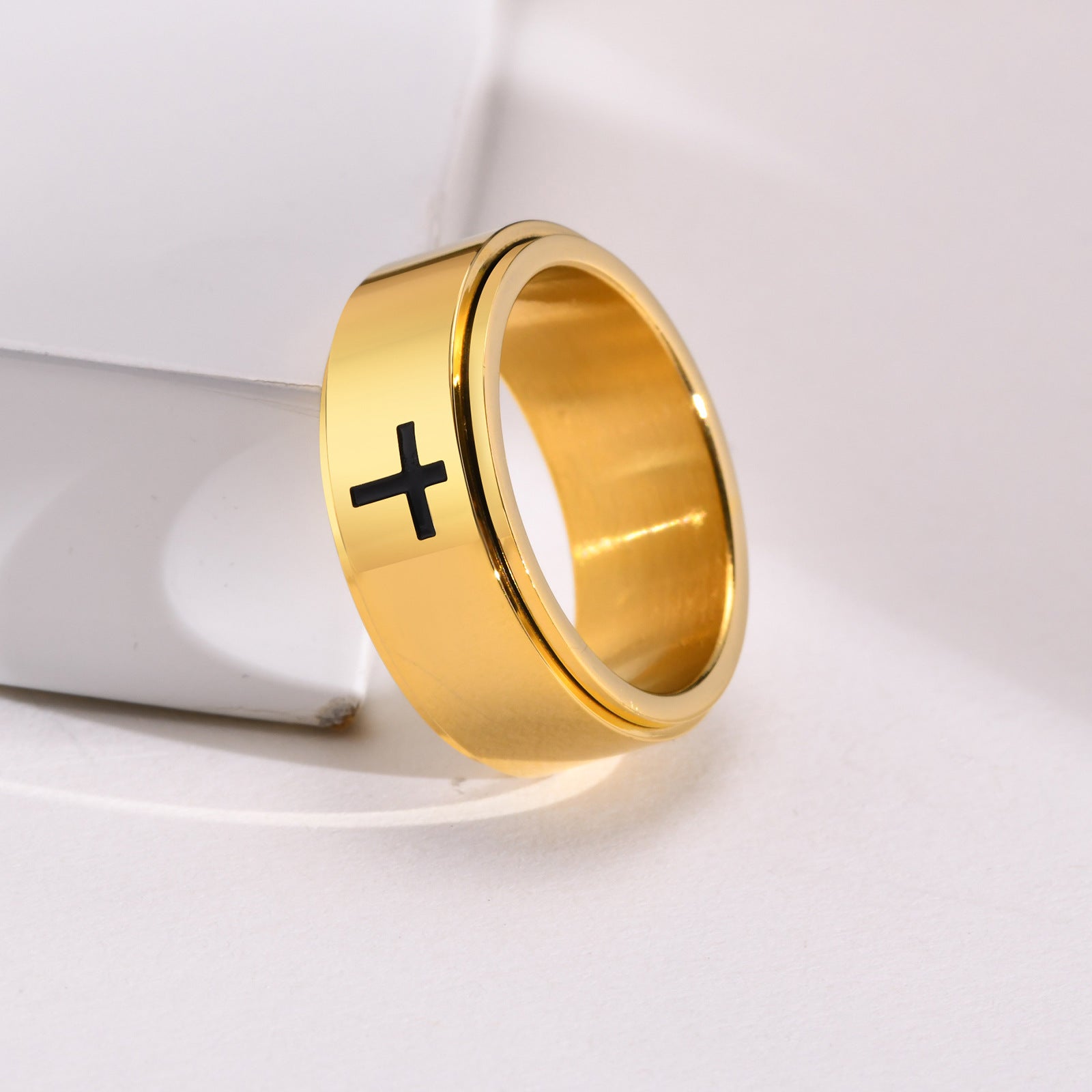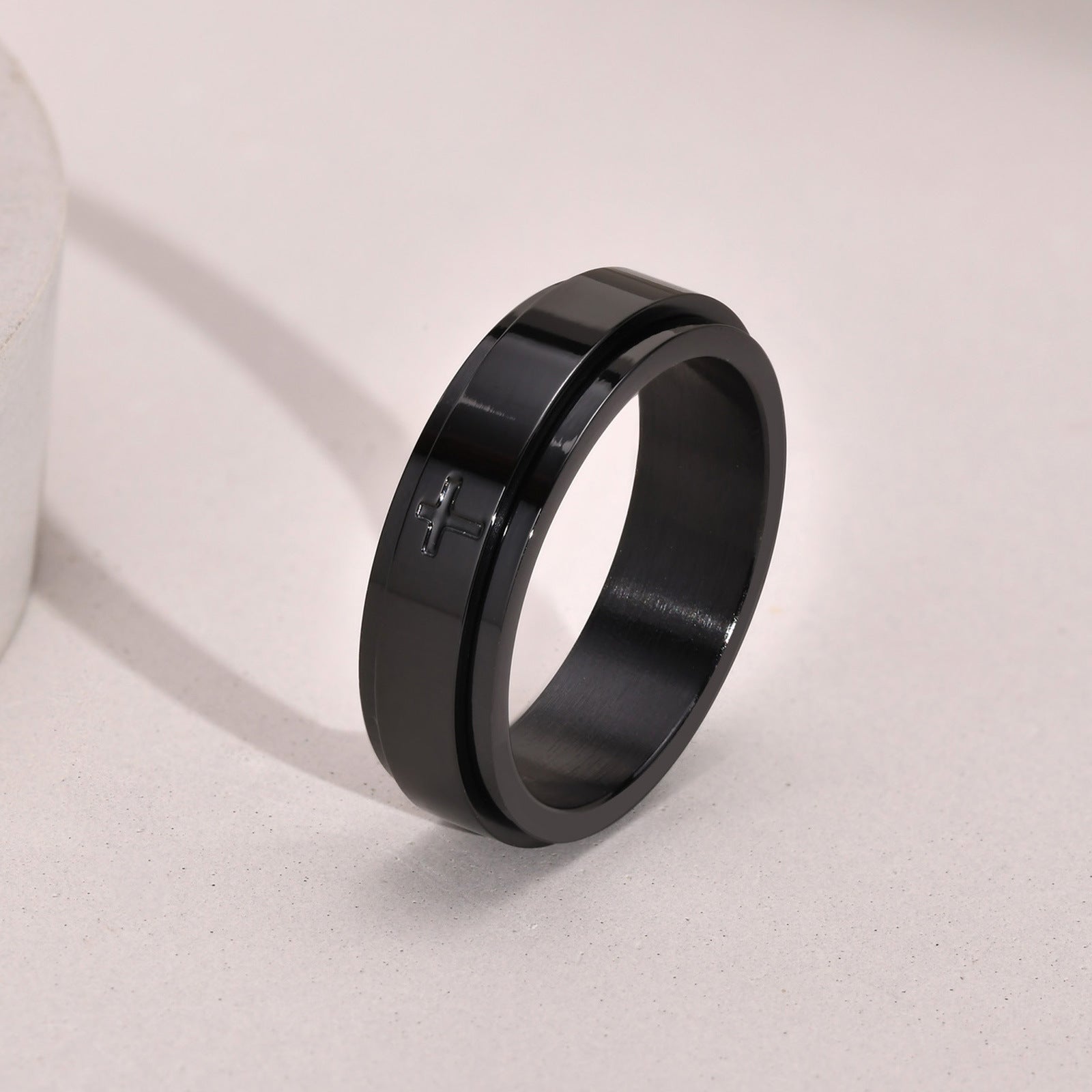 Rockyu メンズクロススピナーリング|回転する十字架デザイン ステンレス指輪