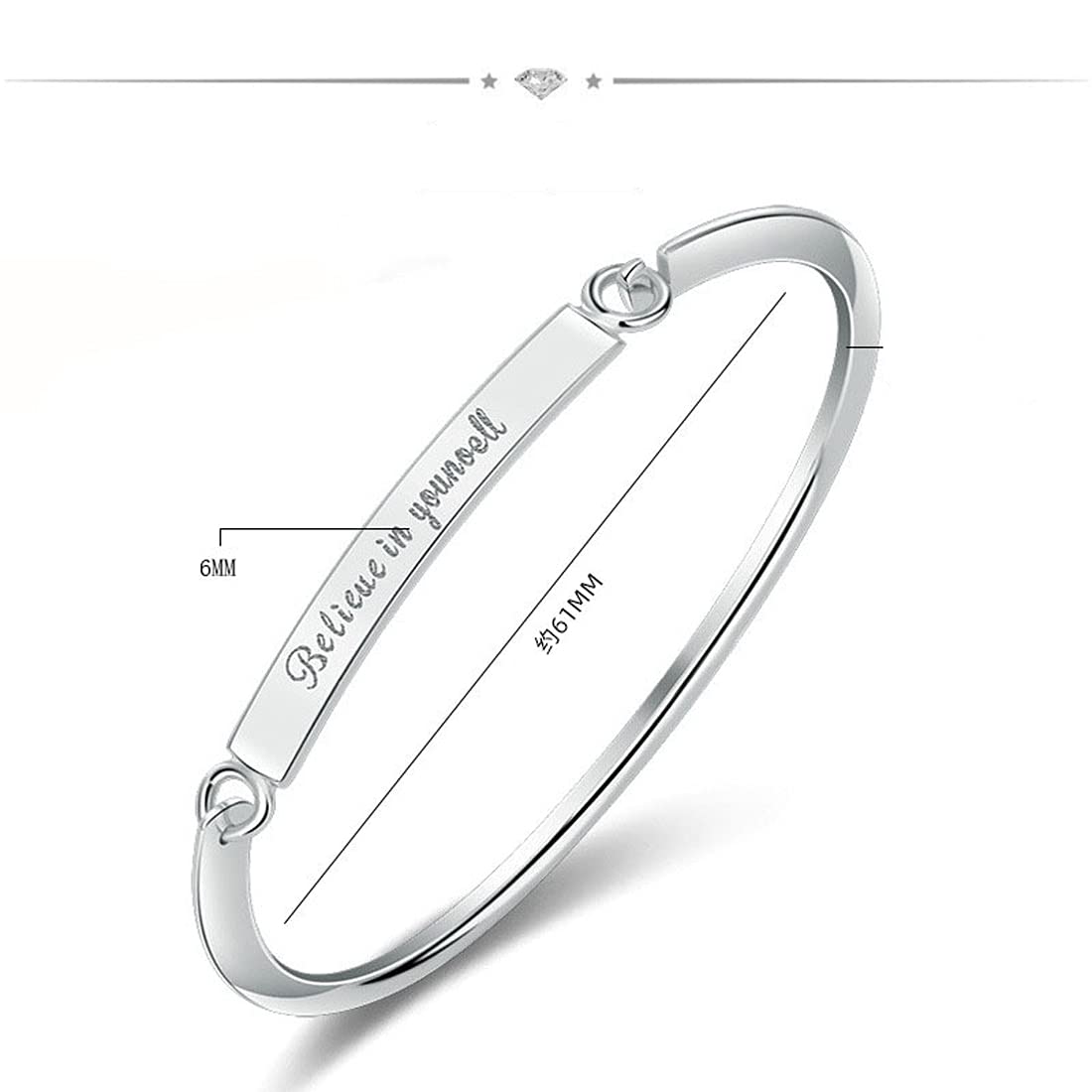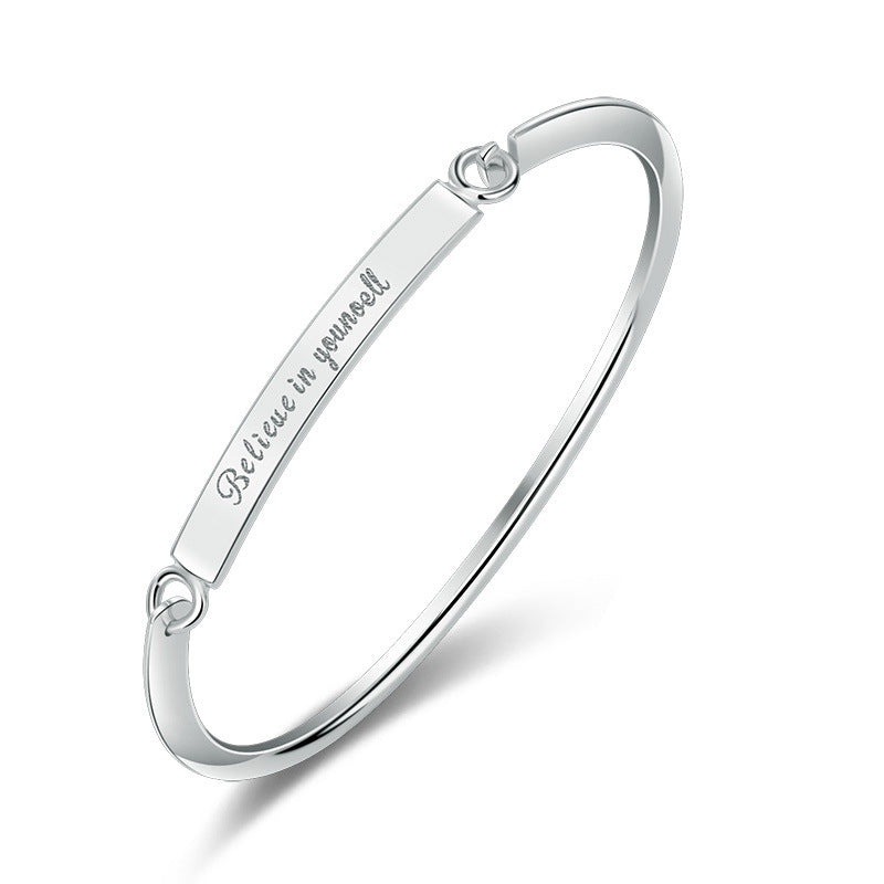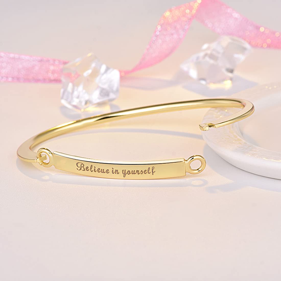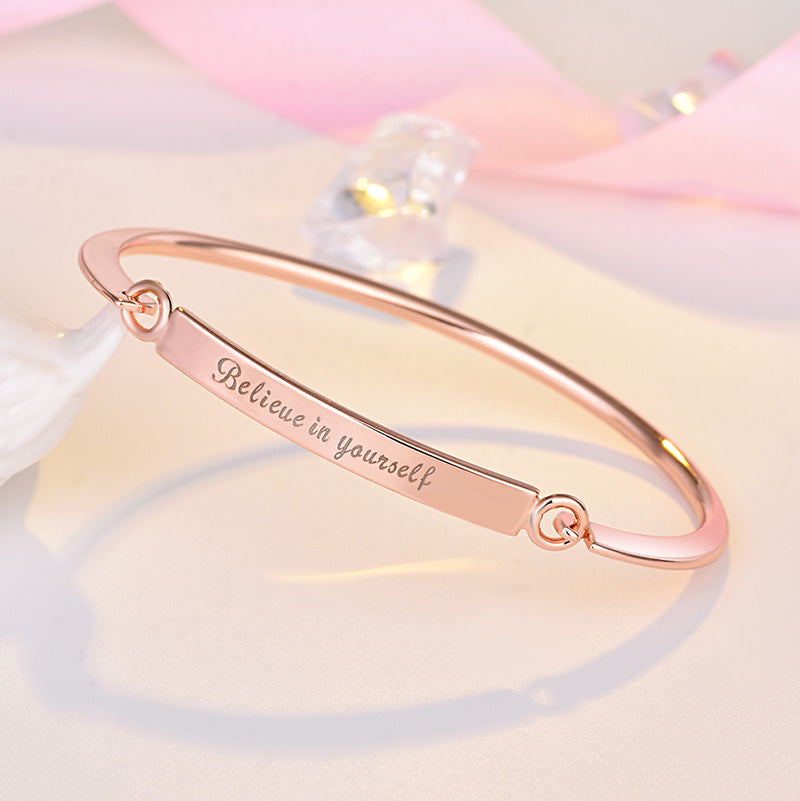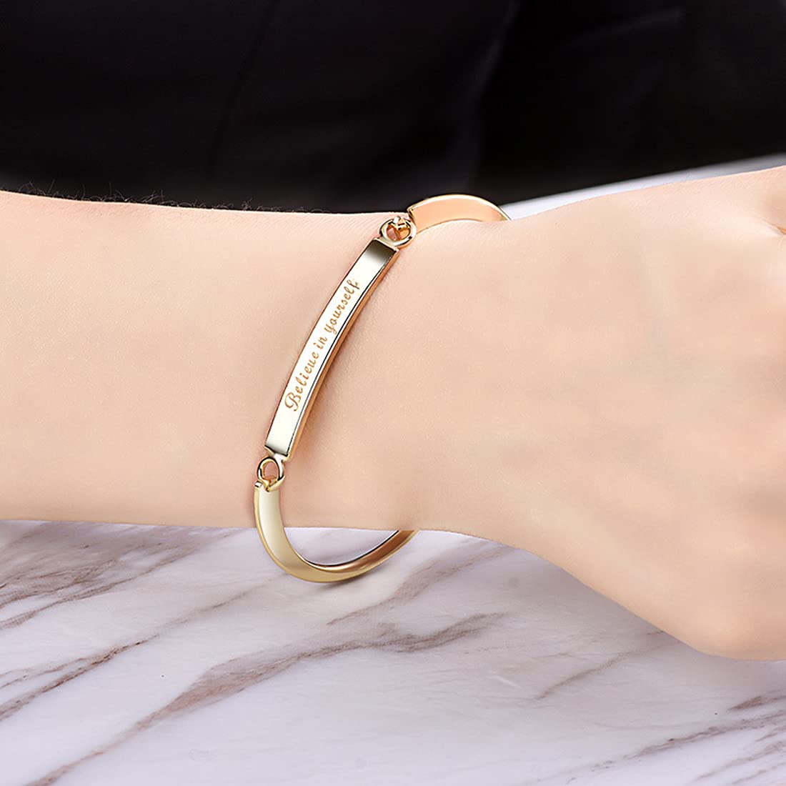 Rockyu レディースブレスレット チタン製 刻印メッセージバングル「Believe in yourself」 シルバー ゴールド ローズゴールド