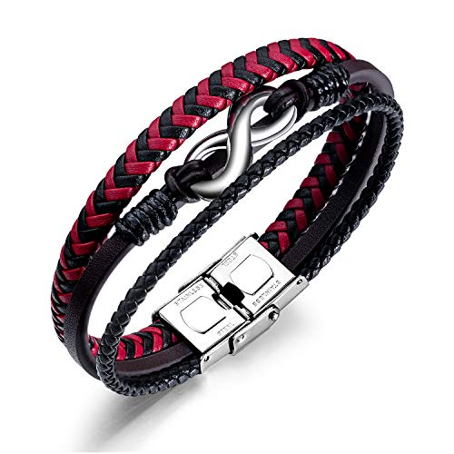 Rockyu メンズブレスレット 三連レザー 無限大 インフィニティ 高級PU編み込み