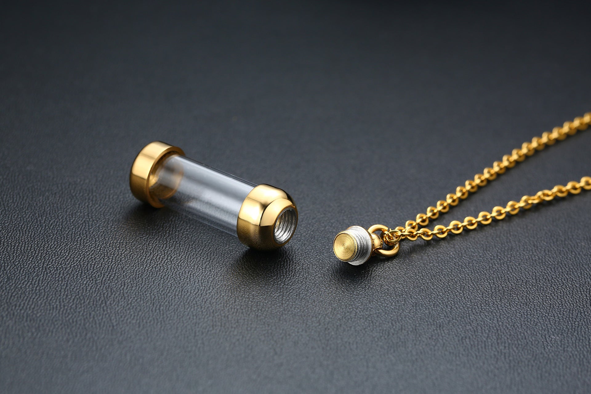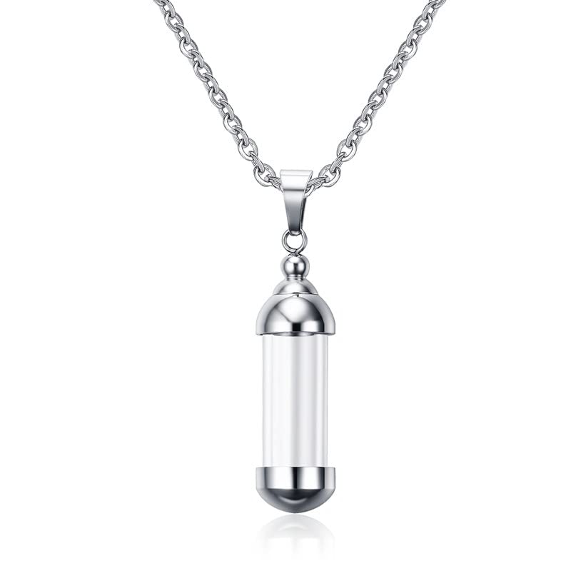 Rockyu カプセルネックレス レディース ステンレス製 ガラス管 香水・薬入れ対応 シルバー・ゴールド・ブラック
