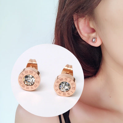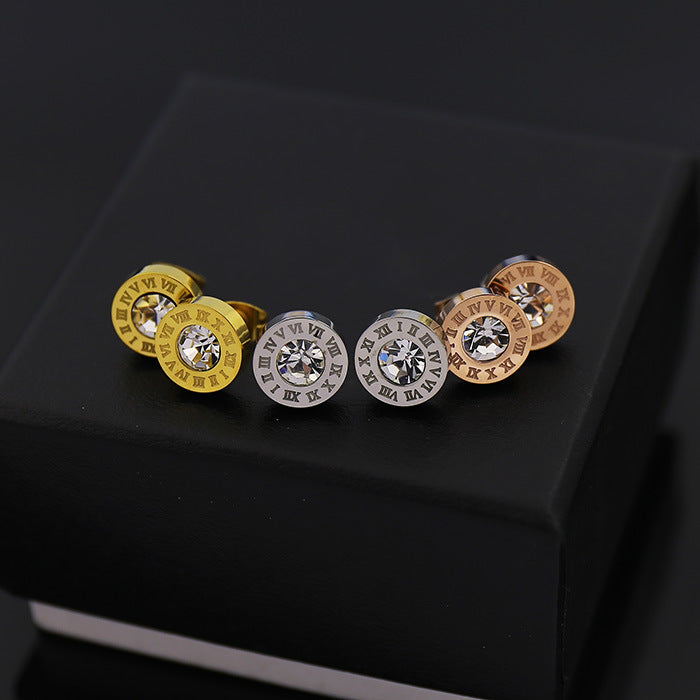 さりげないのに印象的。Rockyuが贈るヨーロピアンスタイルのスタッドピアスは、1粒のキラリと光るダイヤ風ストーンと、ぐるりと囲むローマ数字の刻印が洗練された知性を演出。