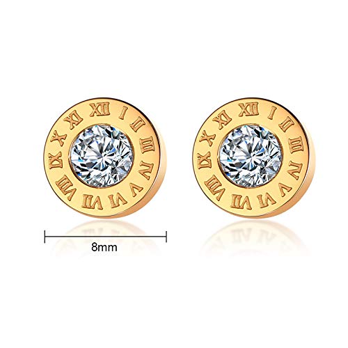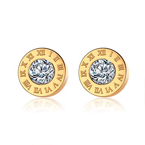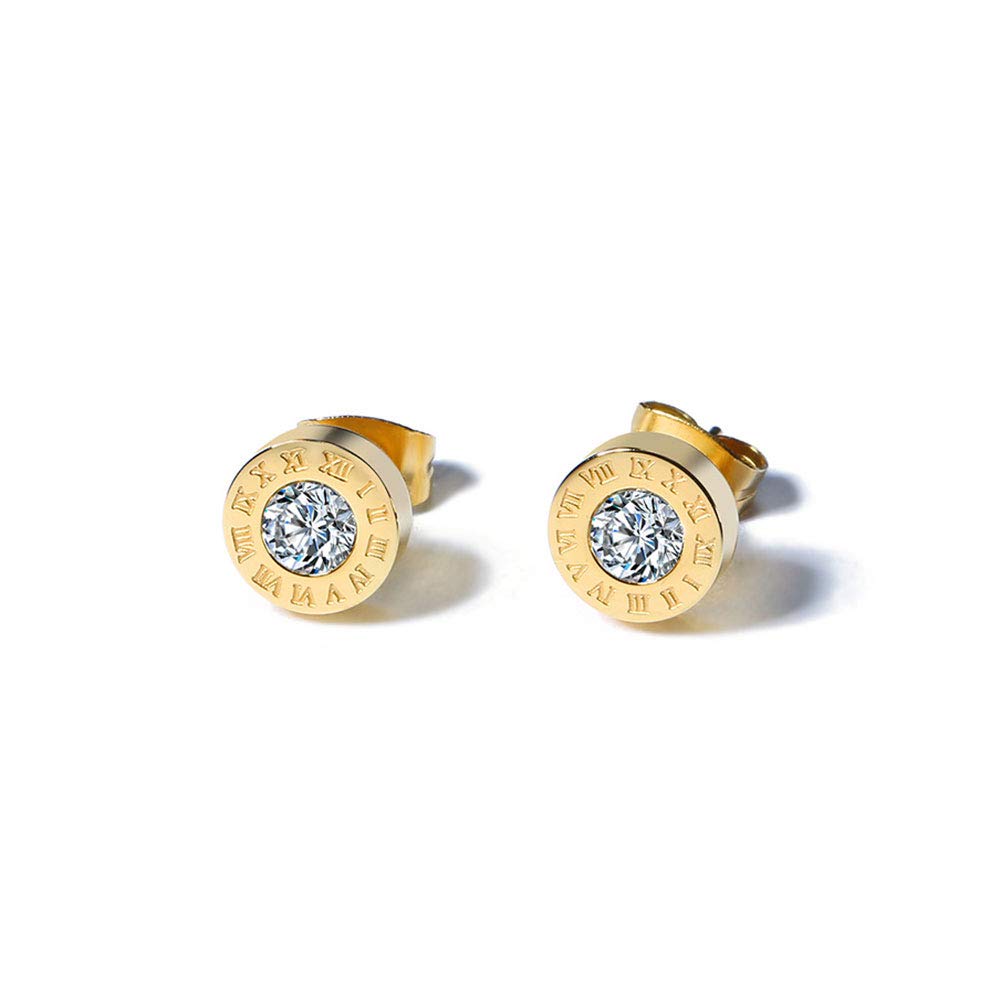 Rockyu レディースピアス ステンレス製 一粒ダイヤ&ローマ数字刻印 スタッドタイプ