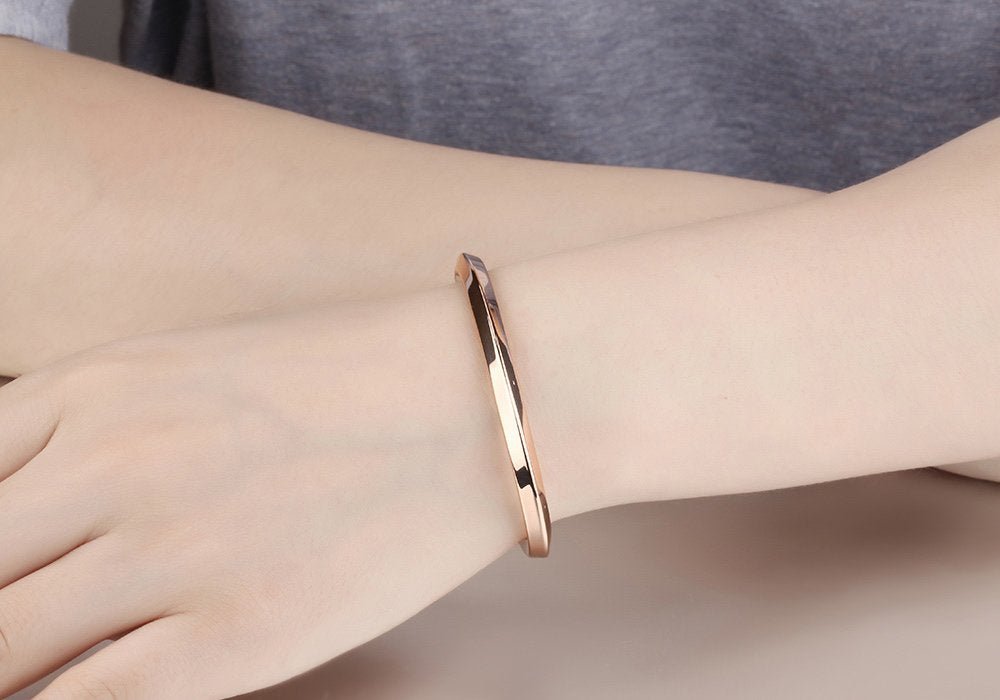 Rockyu ペアバングル|シンプル&ツイストデザイン チタン&ステンレス製ブレスレット