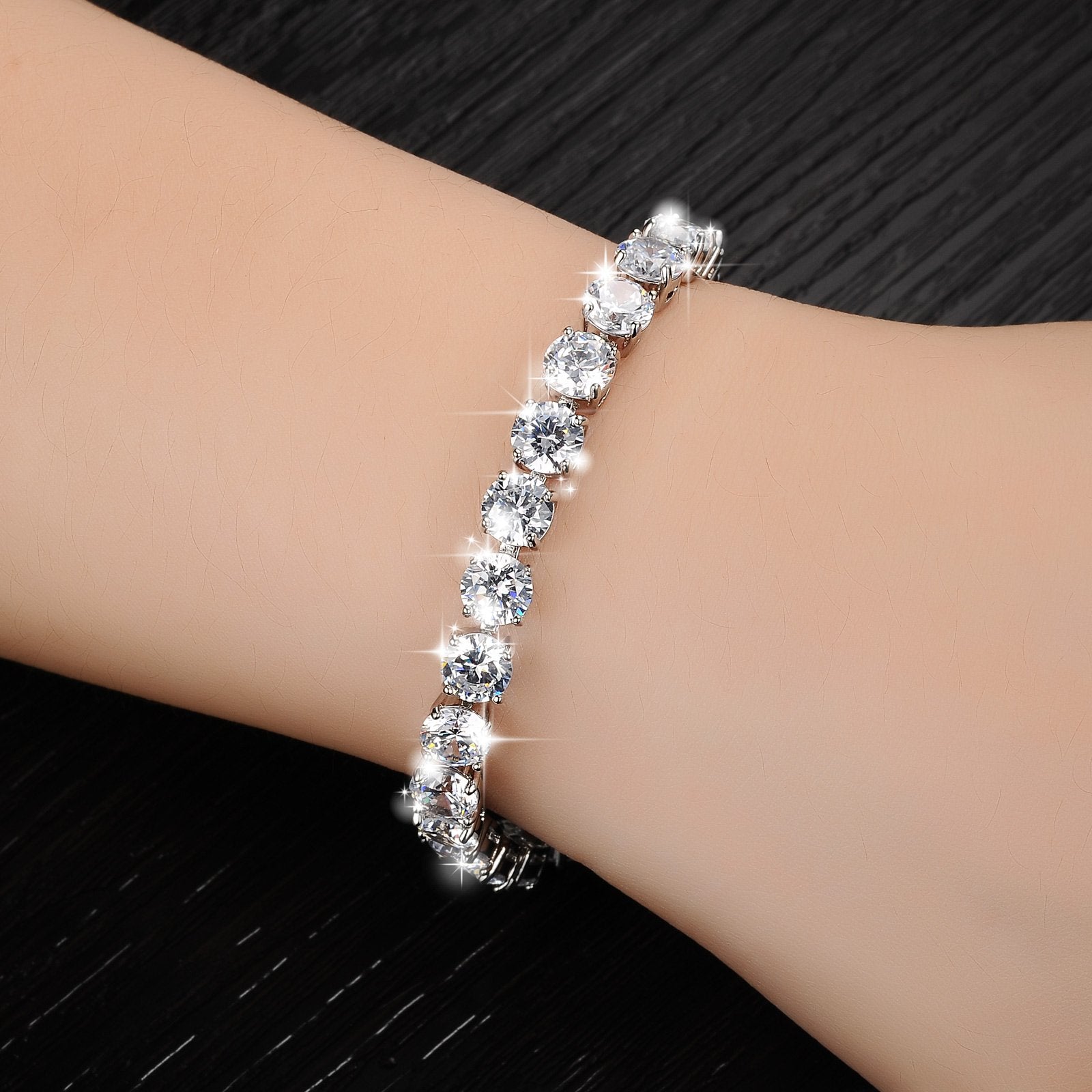 これ一本で気分はまるでプリンセス!Rockyuのレディーステニスブレスレットは、まばゆい5A級ジルコニアを贅沢に並べた、ゴージャスで上品な逸品です。輝きの強さはもちろん、“エイトハート・エイトアロー”の高精度カットで、どの角度から見ても光を受けてキラキラと反射。手首を華やかに彩ります。