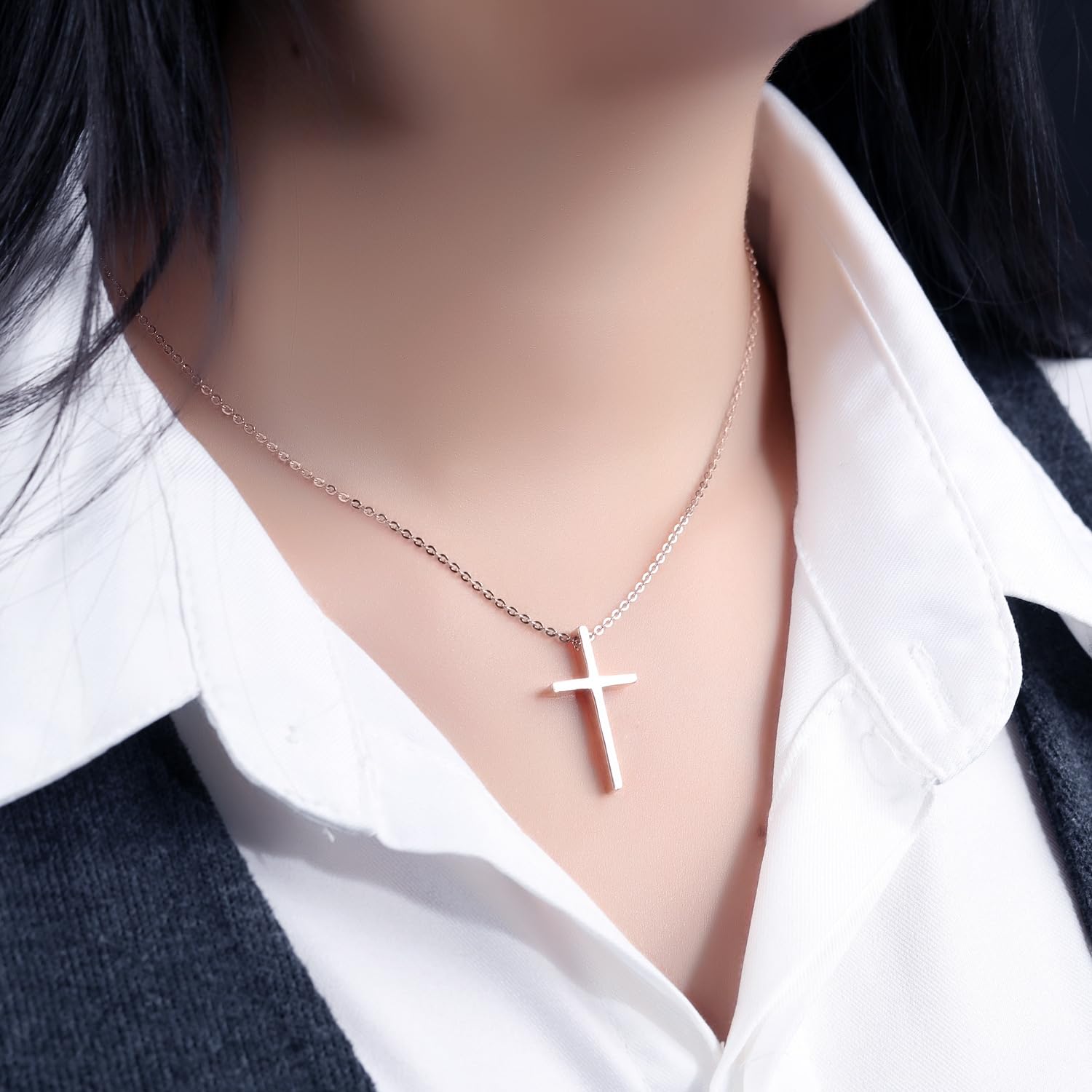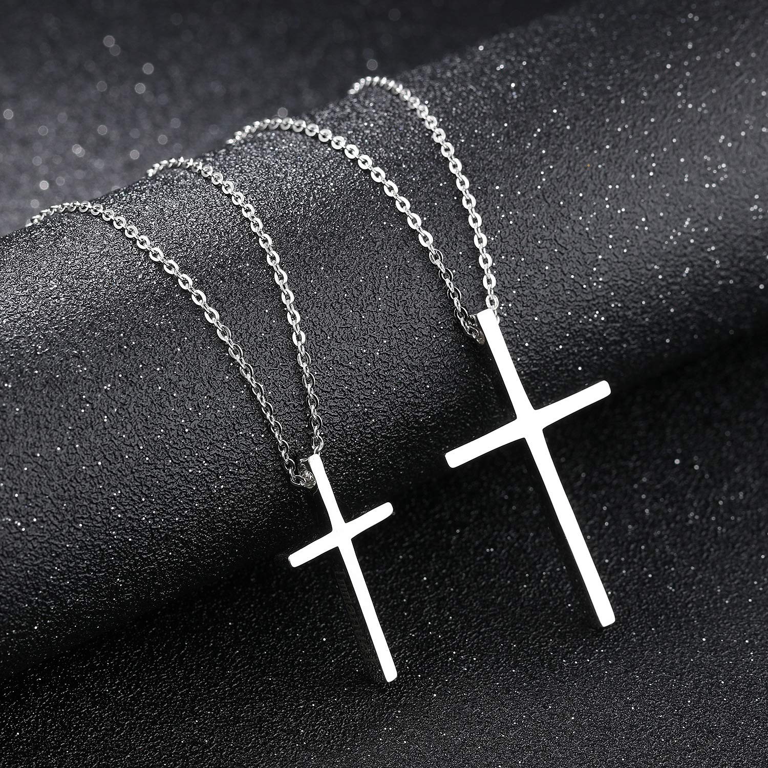Rockyu の十字架ペアネックレスは、シンプルで洗練されたデザインが魅力のユニセックスアクセサリー。ブラック、シルバー、ピンクゴールドの3カラー展開で、カップルや友達同士のお揃いにもおすすめ。細身のクロスデザインはスタイリッシュで、大人のファッションにさりげない存在感をプラスします。