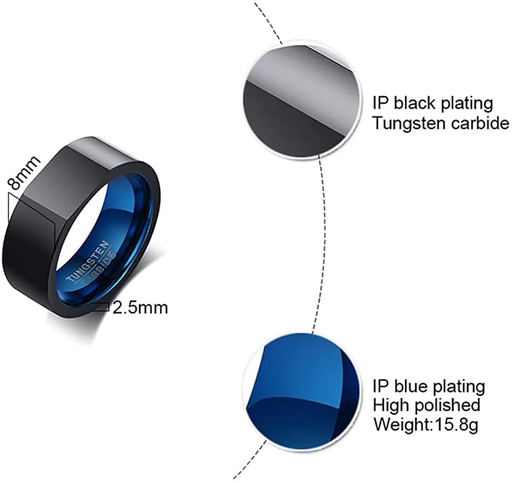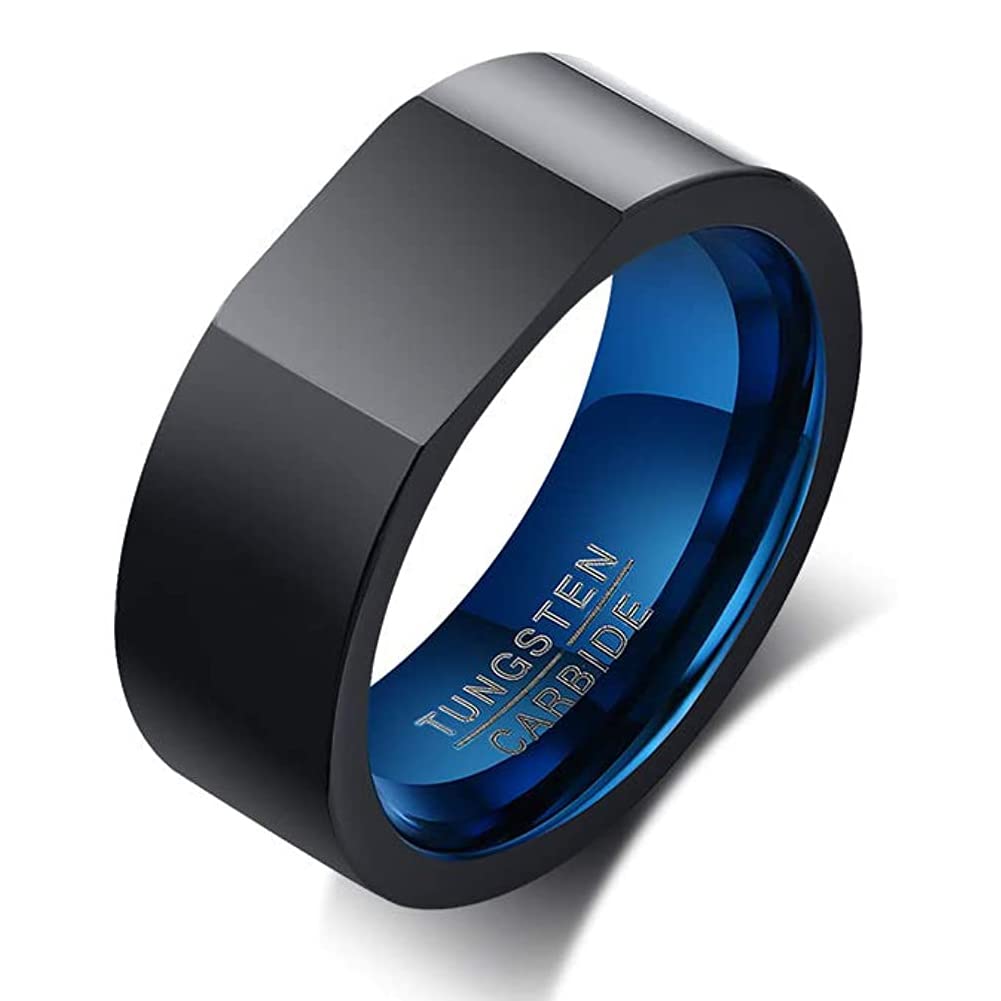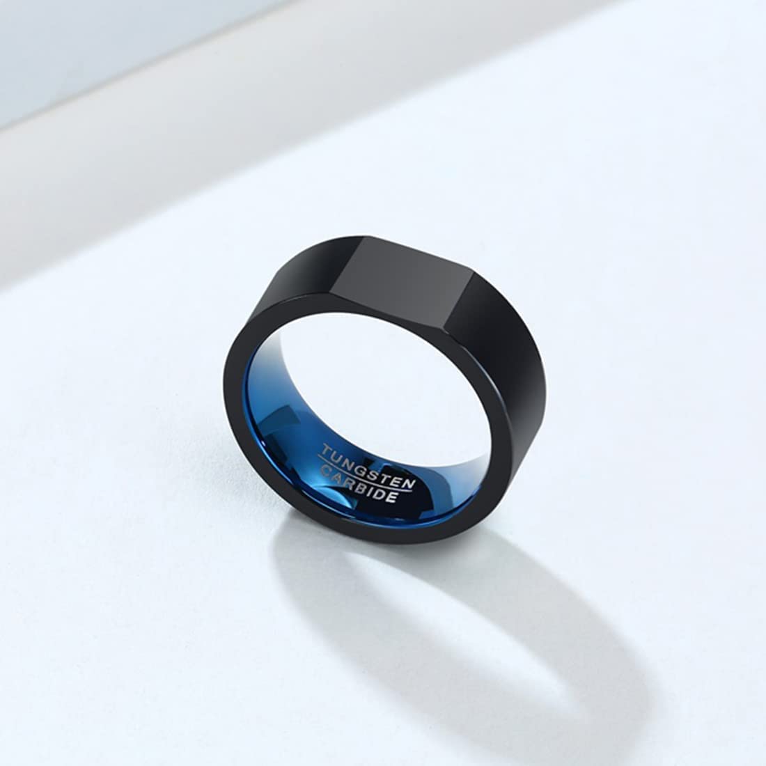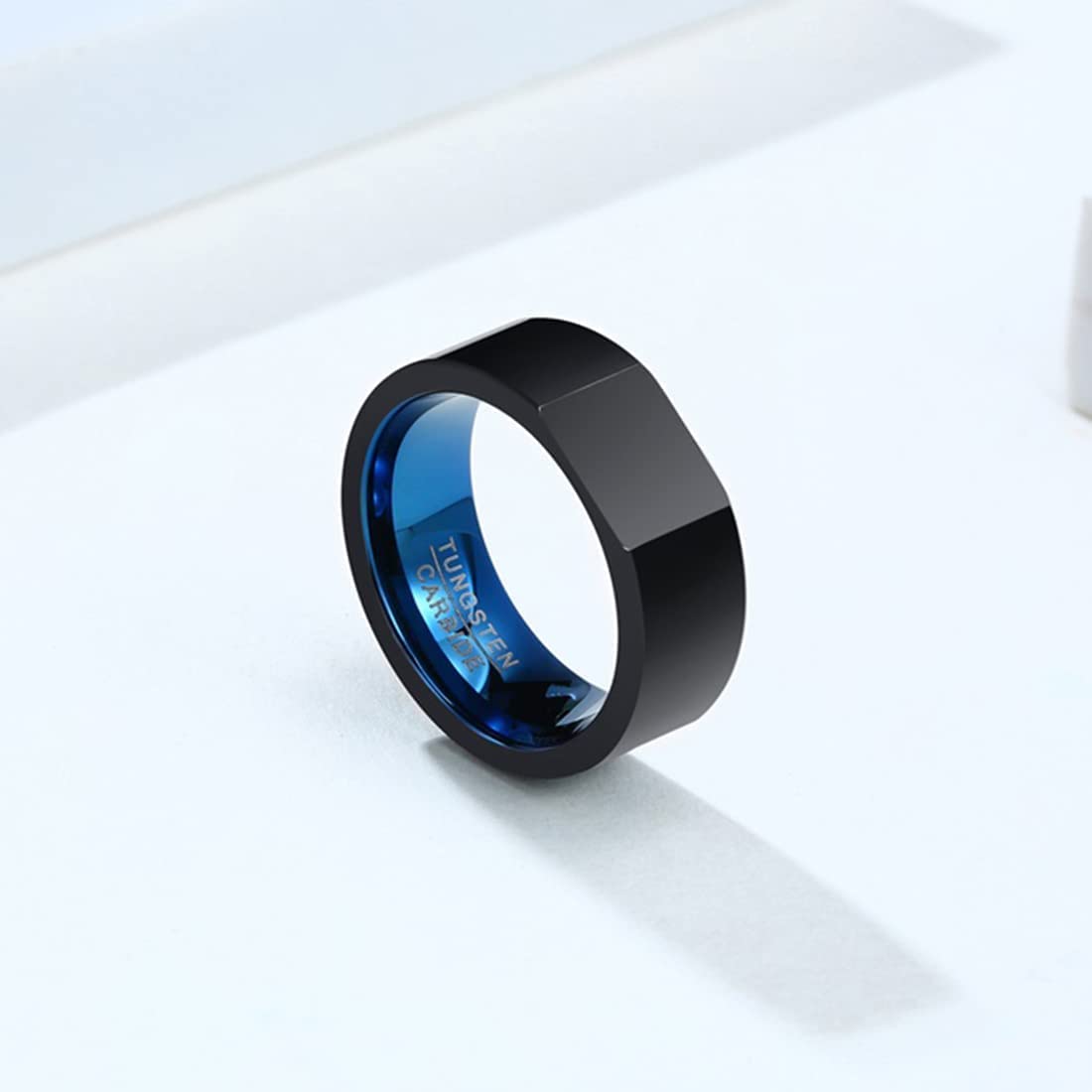Rockyu タングステン リング メンズ ブルー×ブラック 8mm幅 重厚リング 高硬度鏡面仕上げ
