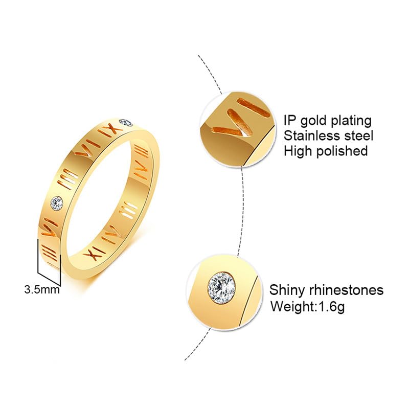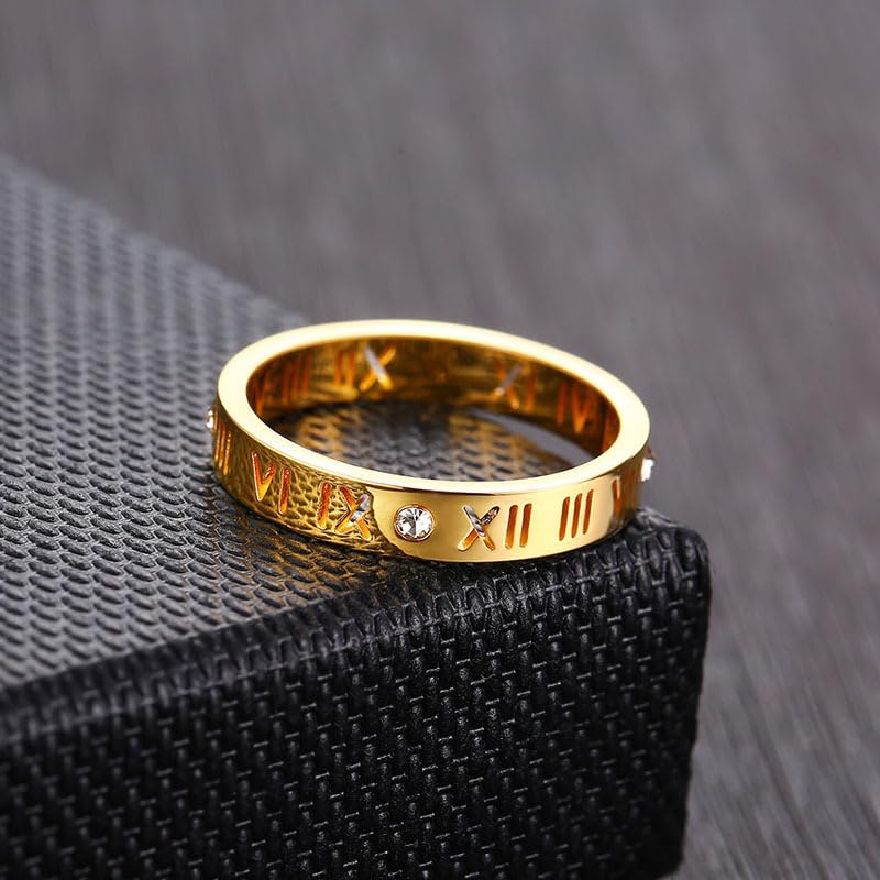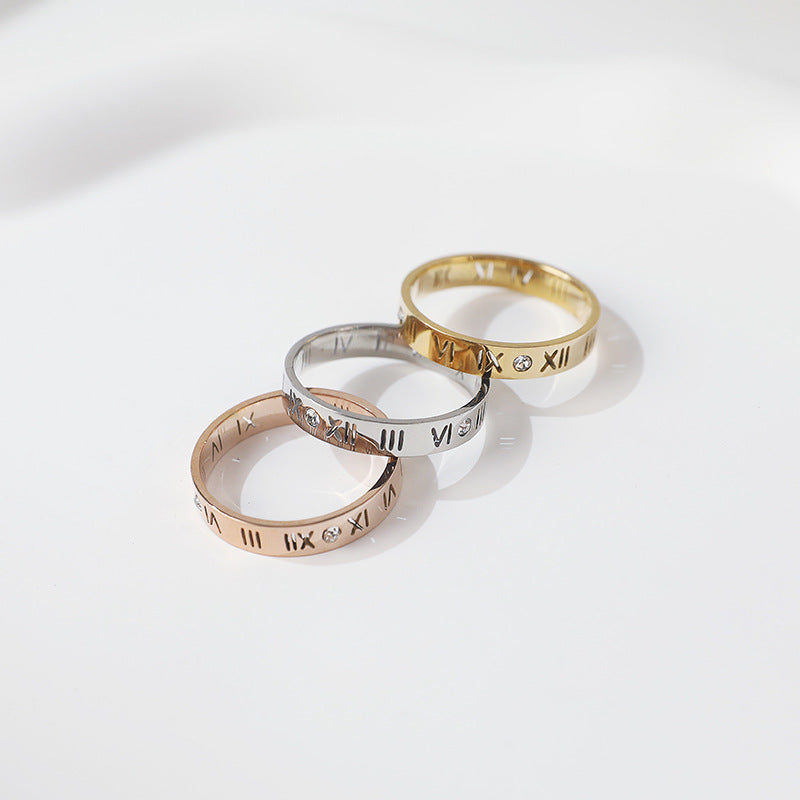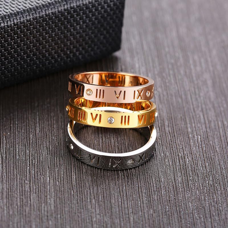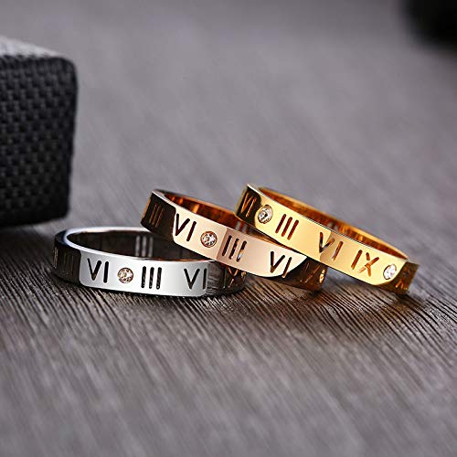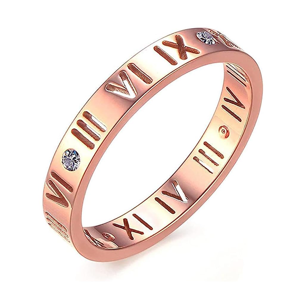 Rockyu ローマ数字リング レディース ステンレス製 3.5mm幅 ピンクゴールド・シルバー