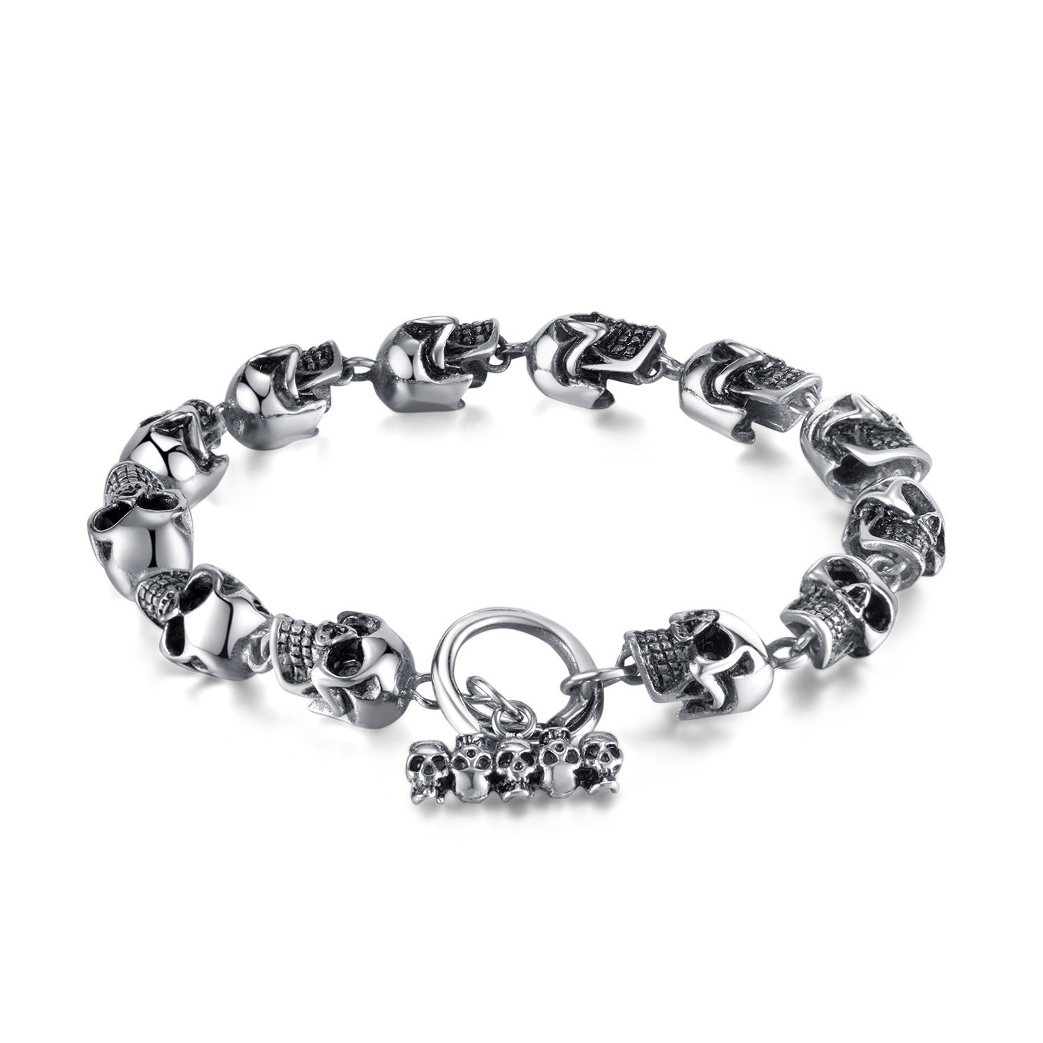 Rockyu スカルチェーンブレスレット メンズ|ゴシック&ロックデザイン|幅広 シルバー|サージカルステンレス製 金属アレルギー対応GS1419-OPK-1-fa
