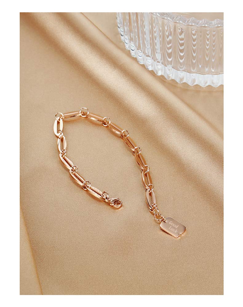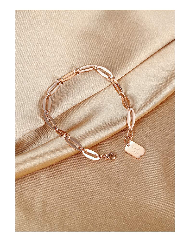 Rockyu ブレスレット レディース ピンクゴールド チタン製 幸運チャーム付き