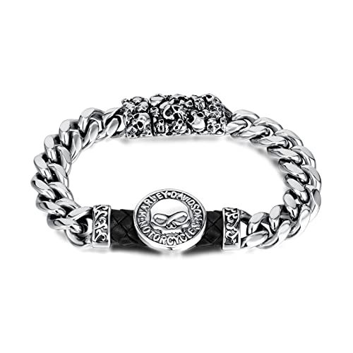 Rockyu メンズ スカルブレスレット シルバー 喜平チェーン 磁気留め具GS1338-OPK-fa
