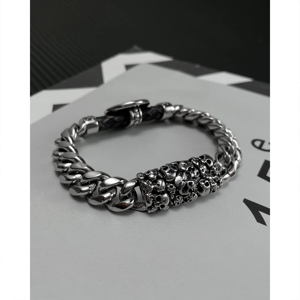 Rockyu メンズ スカルブレスレット シルバー 喜平チェーン 磁気留め具