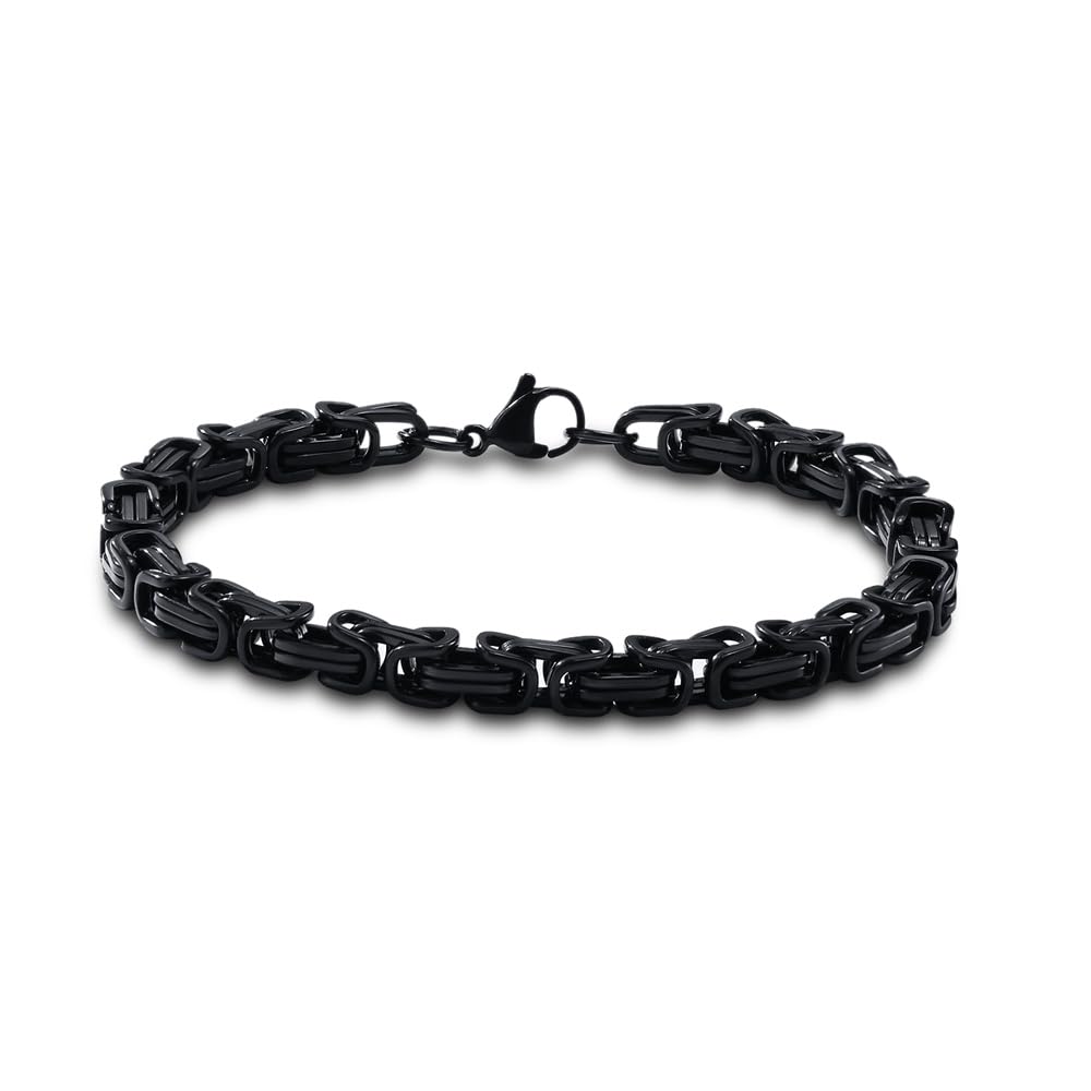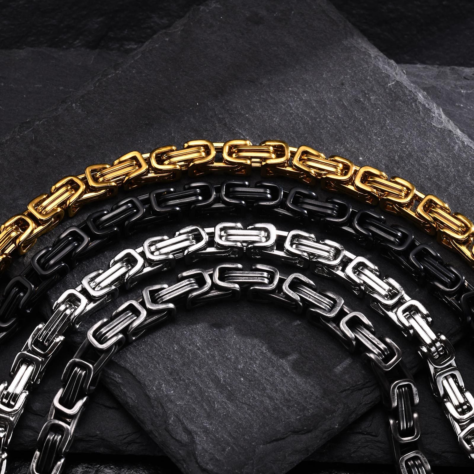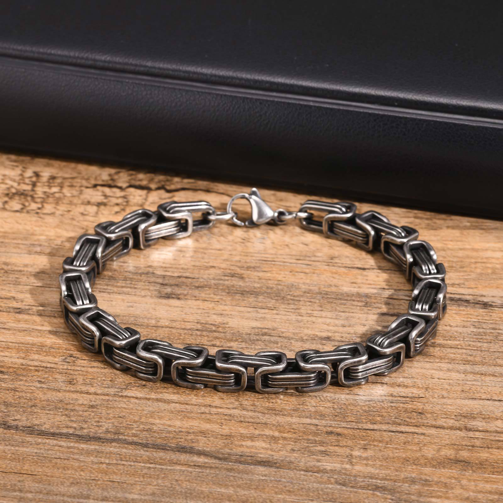 Rockyu ブレスレット メンズ ビザンチンチェーン ステンレス 幅6mm ブラック&シルバー&ゴールド