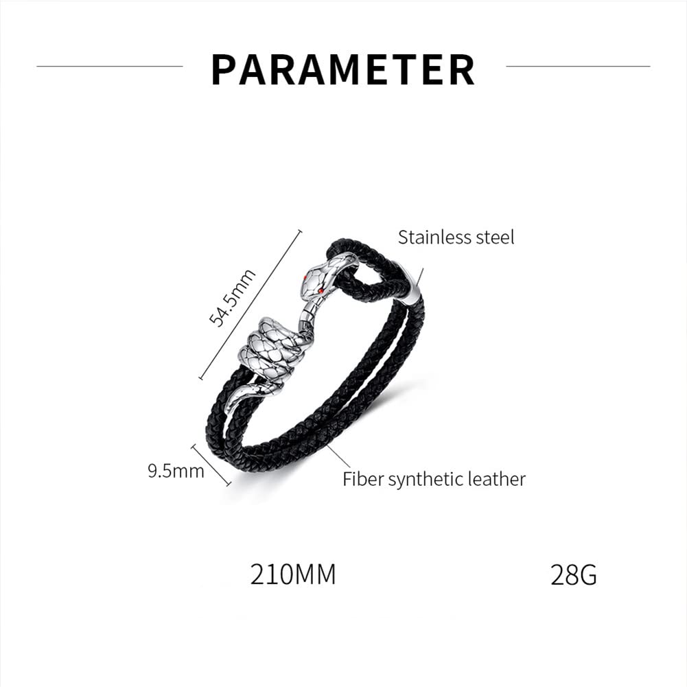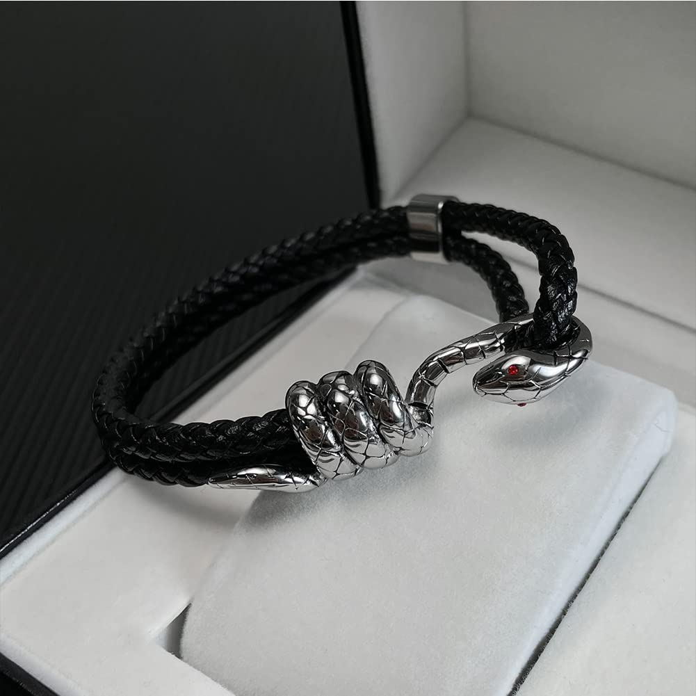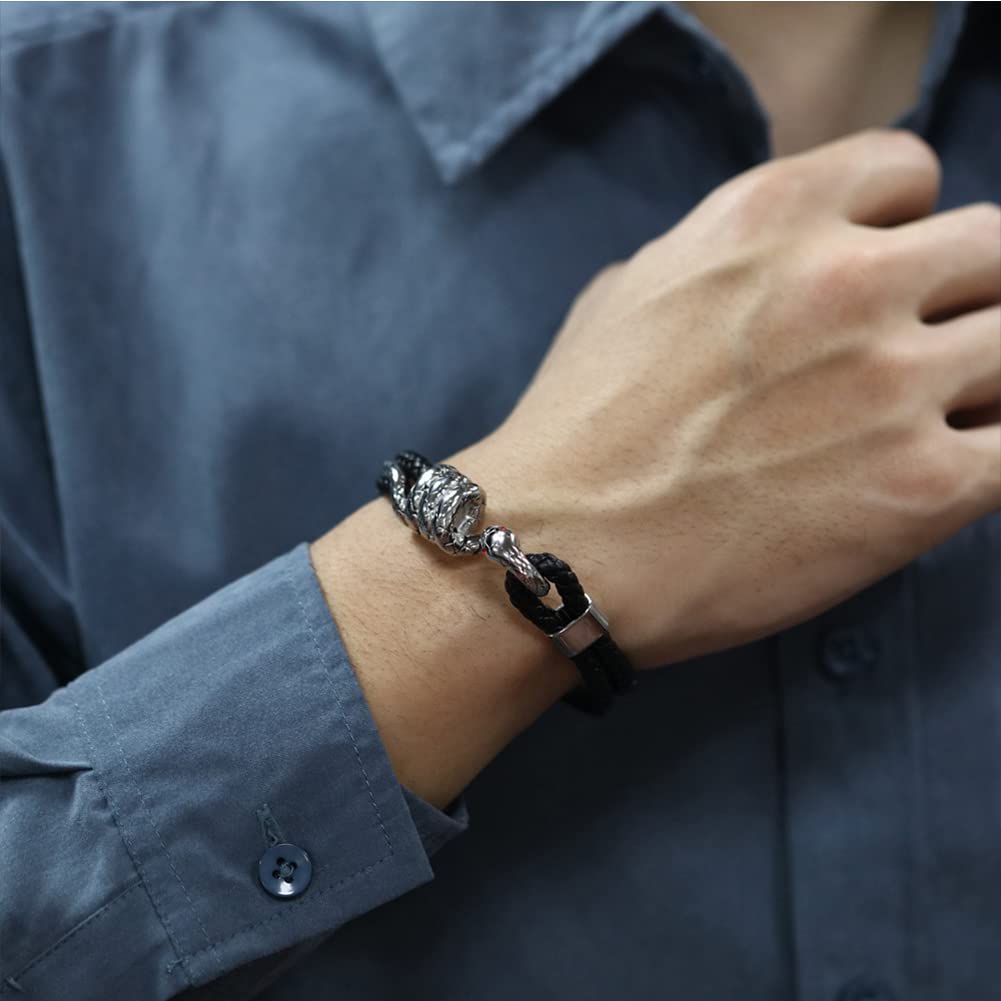 スネークレザーブレスレット メンズ|編み込みレザー×ステンレス蛇ヘッドデザイン