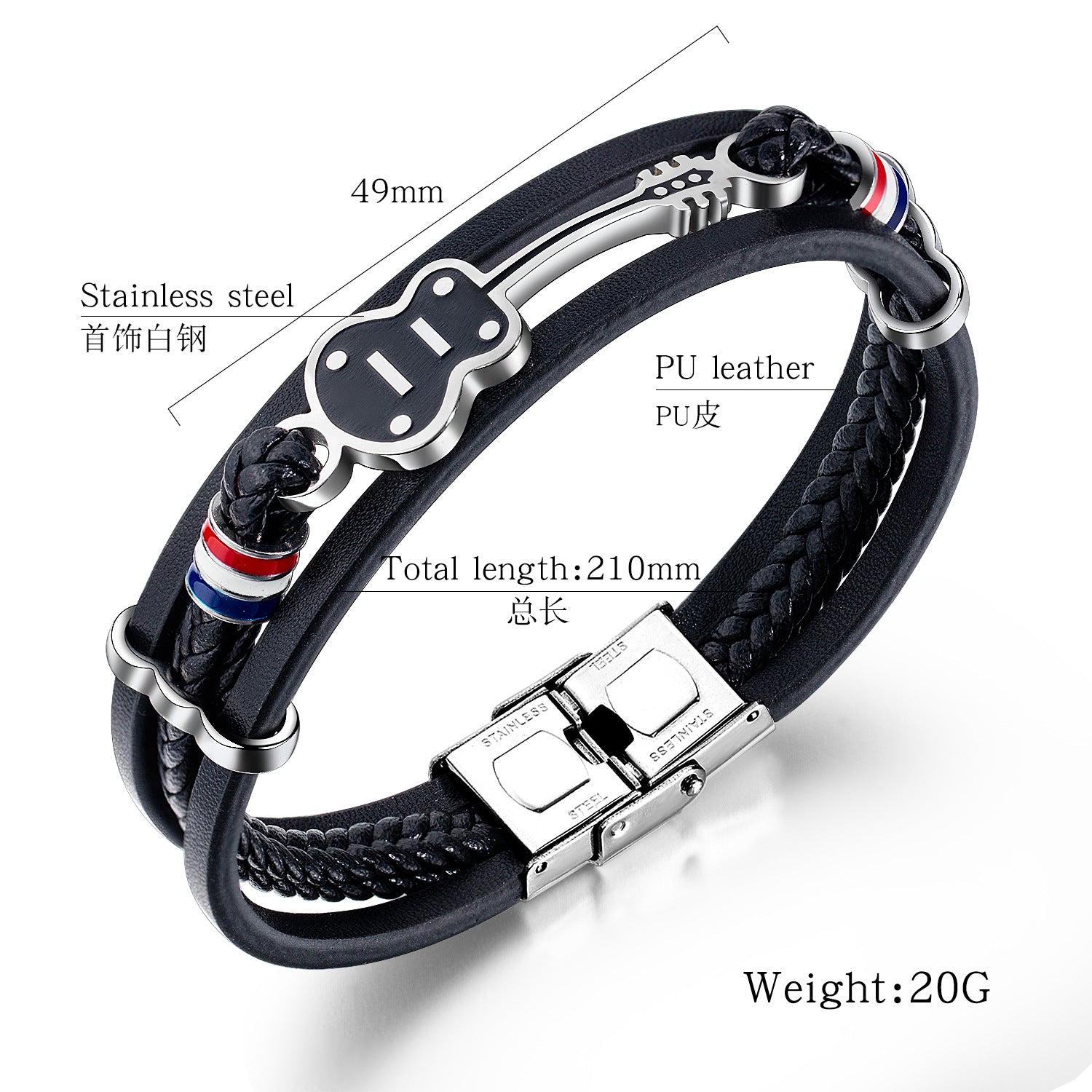 Rockyu ブレスレット メンズ 音楽モチーフ レザー バングル ギター デザイン PU革 ステンレス製 アクセサリー