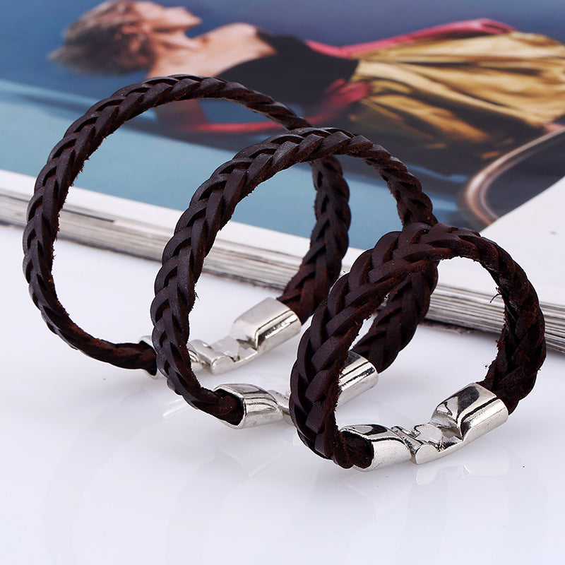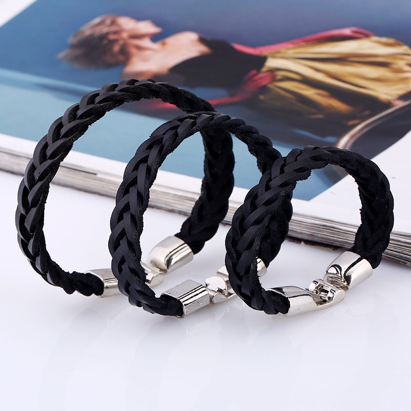 Rockyuの新作、レザーブレスレットで手元にちょっとした男の色気をプラス。PUレザーの編み込みデザインに、無骨なシルバーカラーのマグネット式クラスプが映える、まさに“さりげない主張”の逸品です。