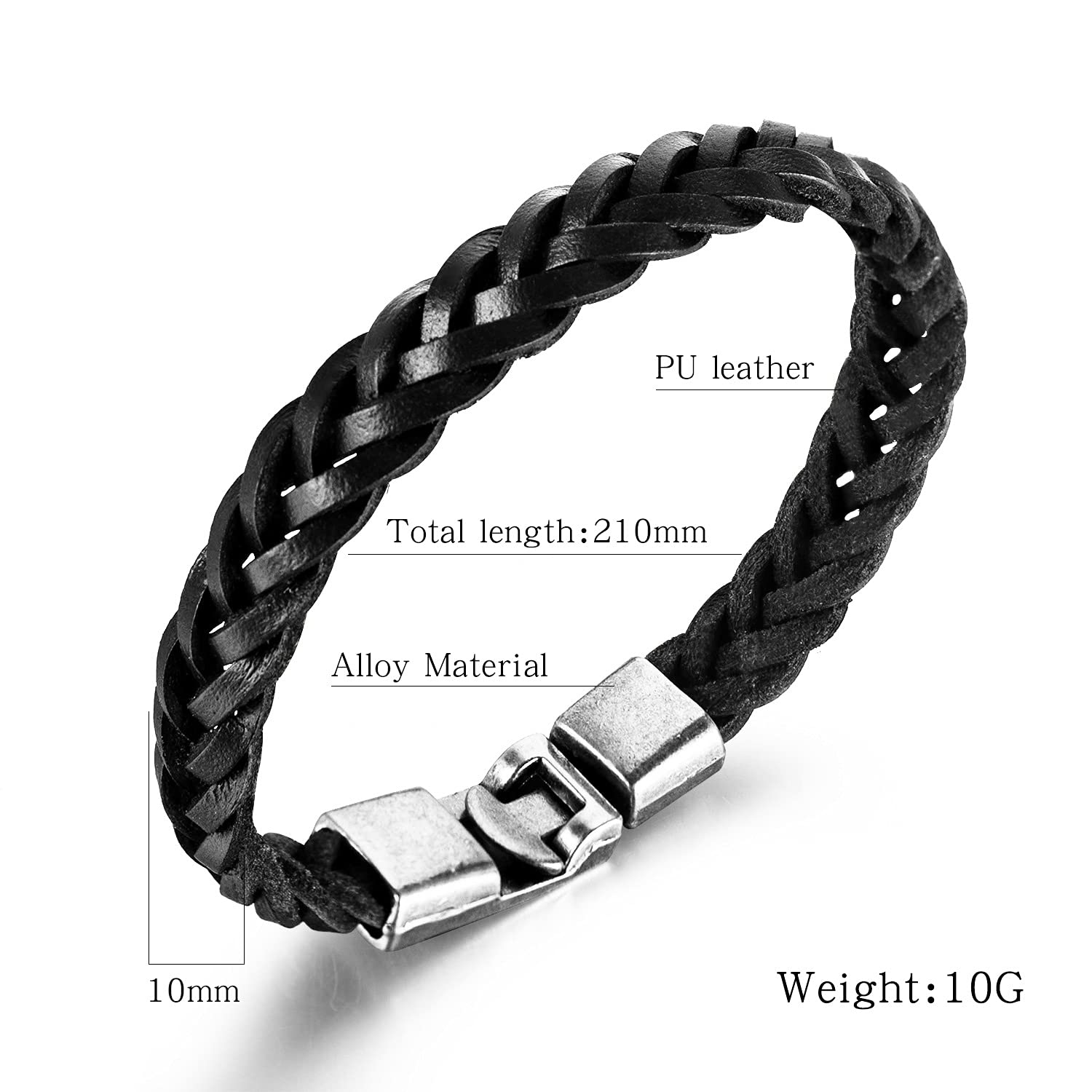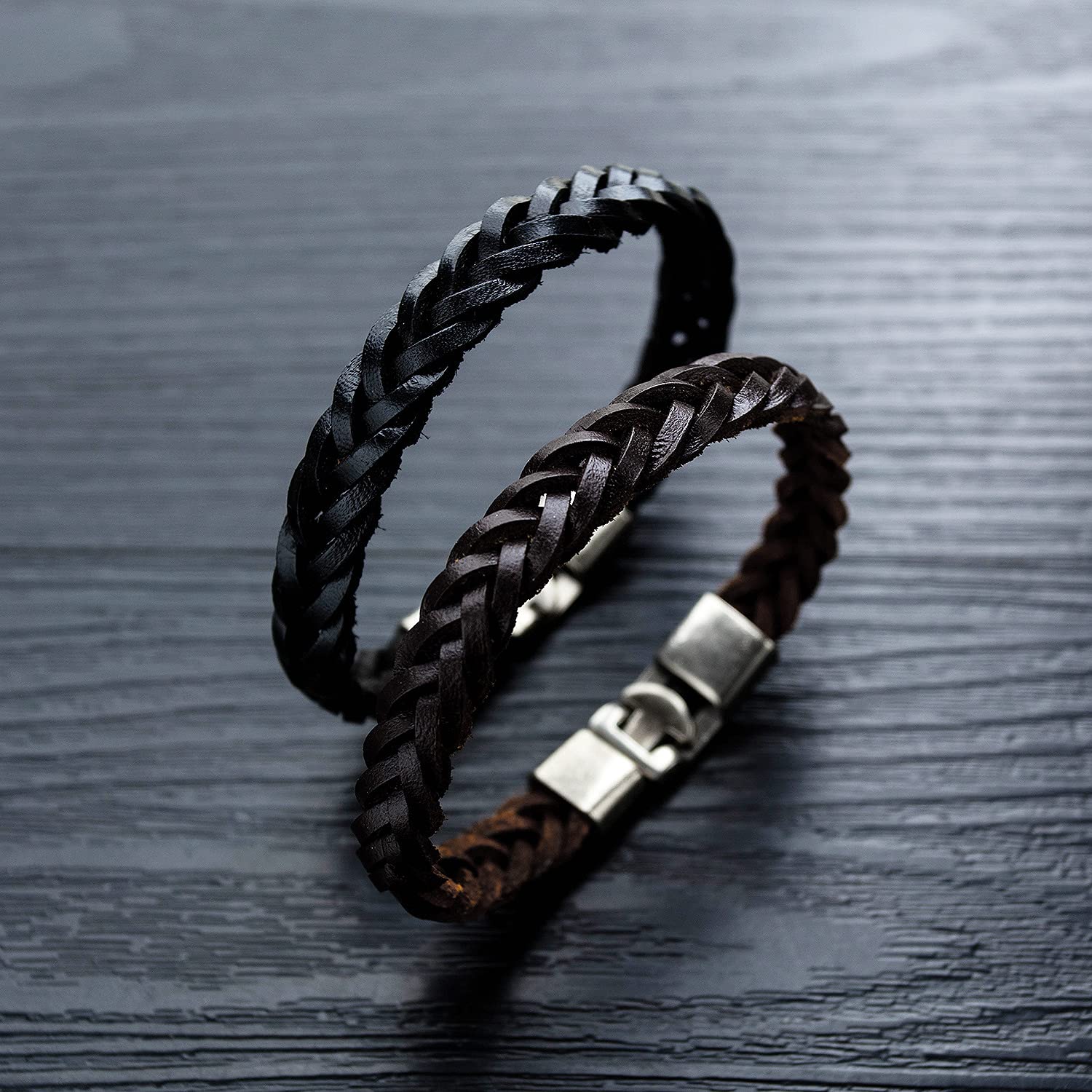 Rockyu レザーブレスレット メンズ 編み込みバングル PUレザー製|ブラック&ブラウン 全3サイズ