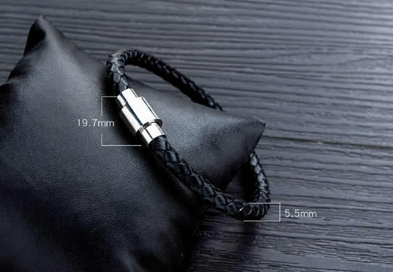 Rockyu ブレスレット メンズ レザー編み込み ステンレス留め具 シンプル おしゃれ ブラックバングル
