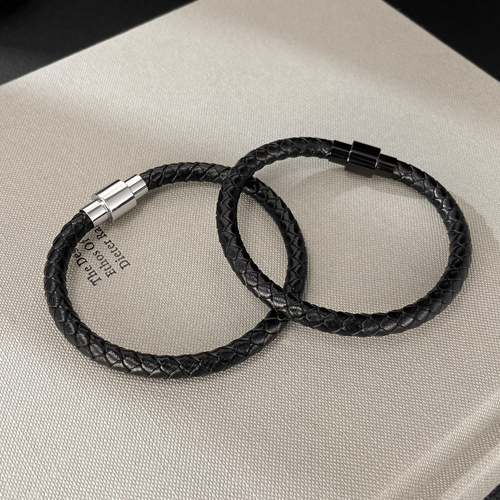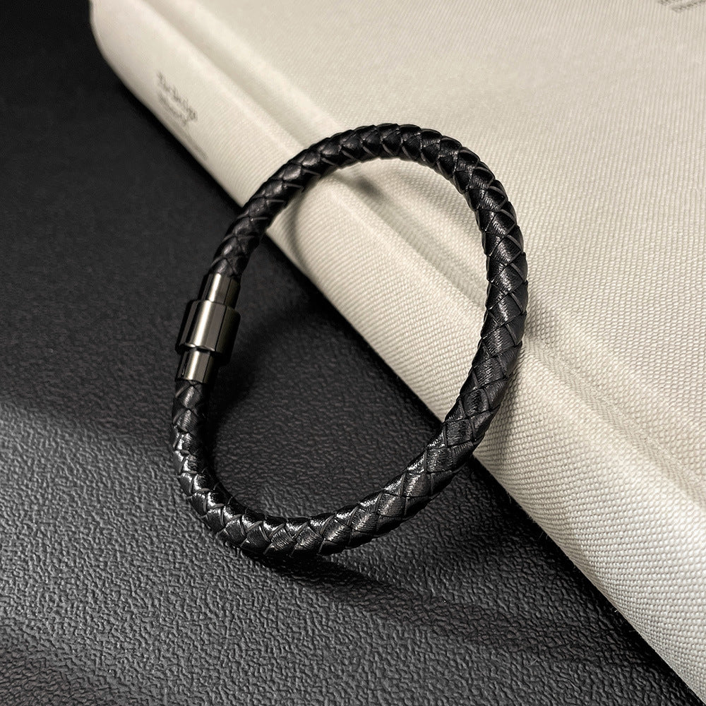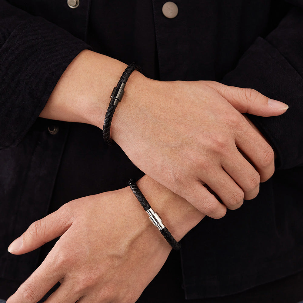 「さりげない格好良さは、細部に宿る」——Rockyuから登場したこのブレスレットは、無駄を削ぎ落としたシンプルデザインに、しっかりと存在感を宿した一本。ブラックのPUレザーを編み込んだ質感は、大人の落ち着きとカジュアルな遊び心を絶妙に融合しています。