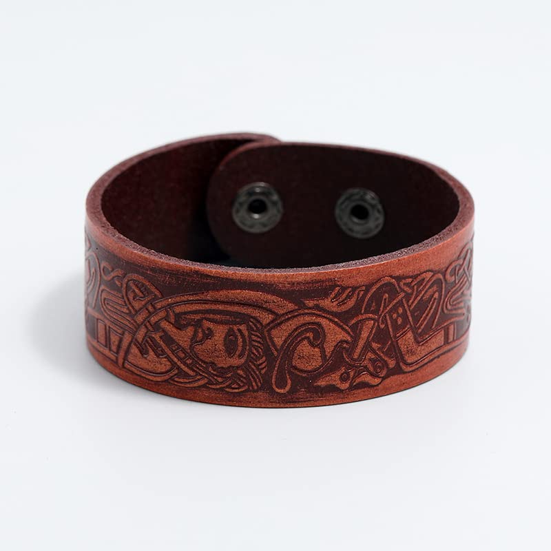 Rockyuのレザーブレスレットは、ヴィンテージ感あふれるエンボス模様を施したこだわりのハンドメイドデザイン。幅2.5cmのカフバングルは存在感抜群で、手首にしっかりとフィットします。全長は22.5cm、スナップボタンで簡単に着脱できる仕様。深みのある「復古深棕」と味わいのある「復古浅棕」の2色展開で、コーディネートや好みに合わせて選べます。カジュアルからロック、アウトドアスタイルまで幅広くマッチし、普段使いはもちろん特別な日のアクセントにも最適。耐久性に優れたレザー素材が、使い込むほどに味わいを増し、長く愛用できます。誕生日や記念日のギフトにも喜ばれる、Rockyuならではのクラフト感あふれる逸品です。