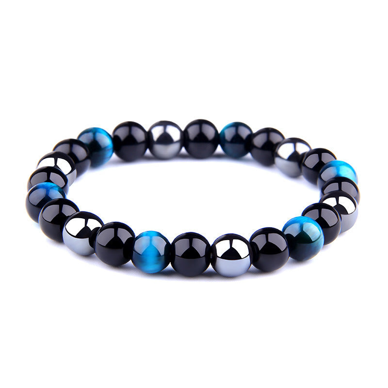Rockyu が贈る、スタイリッシュで頼れる天然石ブレスレット。艶やかなブラックビーズに、虎目石の存在感ある輝きがプラスされることで、シンプルながらも目を惹くデザインに仕上がりました。メンズもレディースも手首にフィットし、ファッションに合わせやすく、毎日のコーディネートにちょっとしたスパイスを与えてくれます。