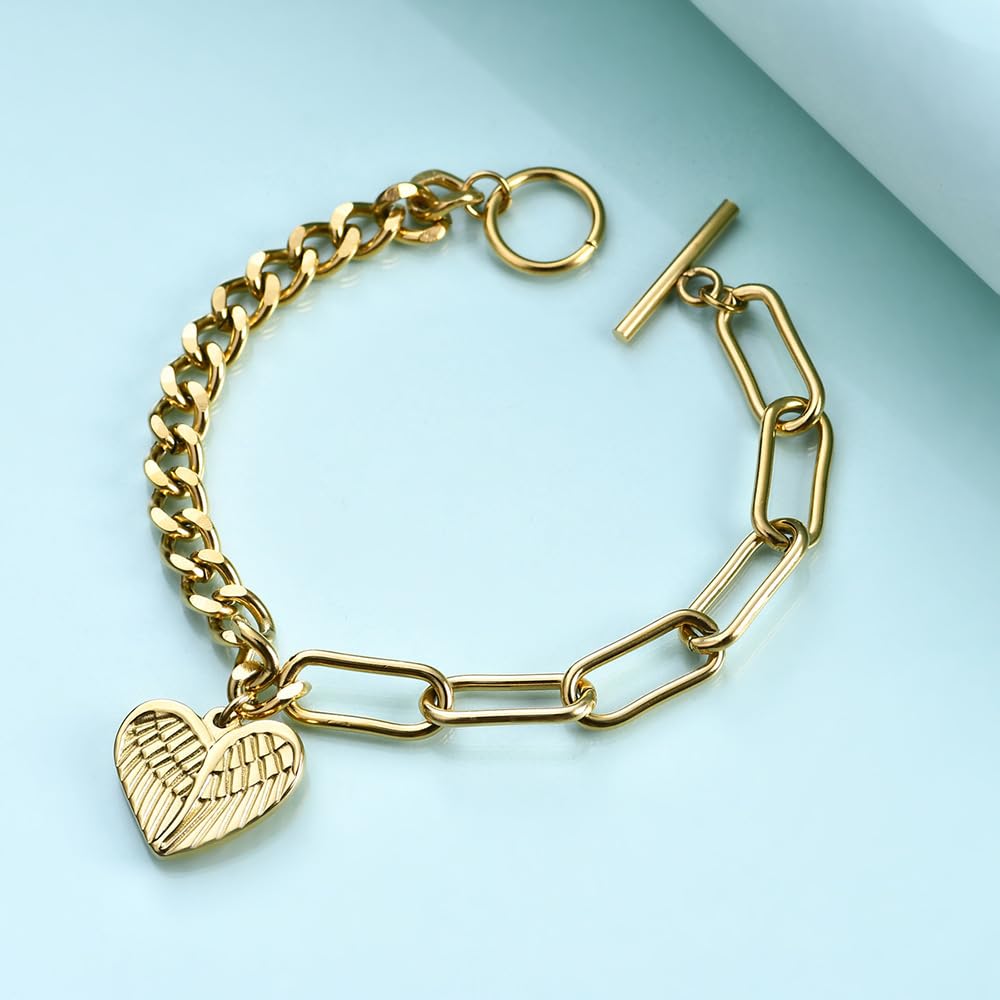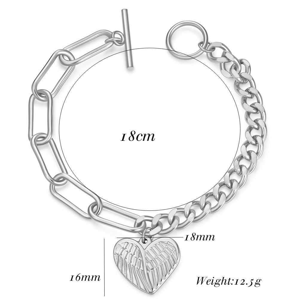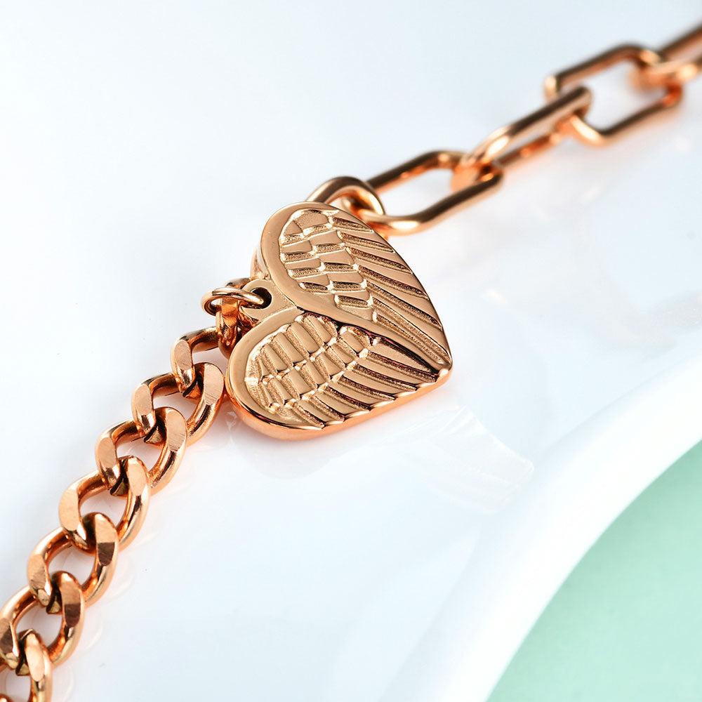 Rockyu ブレスレット レディース ハートチャーム付き 天使の翼モチーフ OTチェーン 18cm