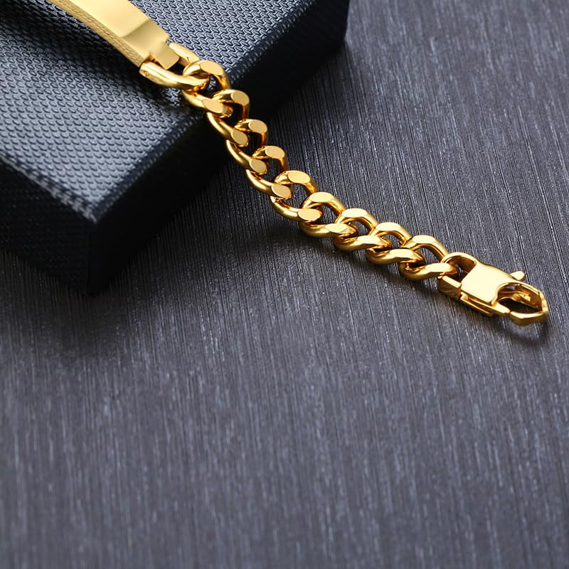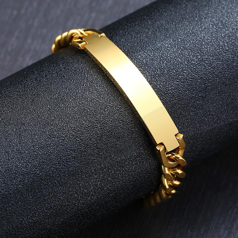 Rockyu ブレスレット メンズ レディース プレート チェーン ステンレス製 IPゴールド仕上げ