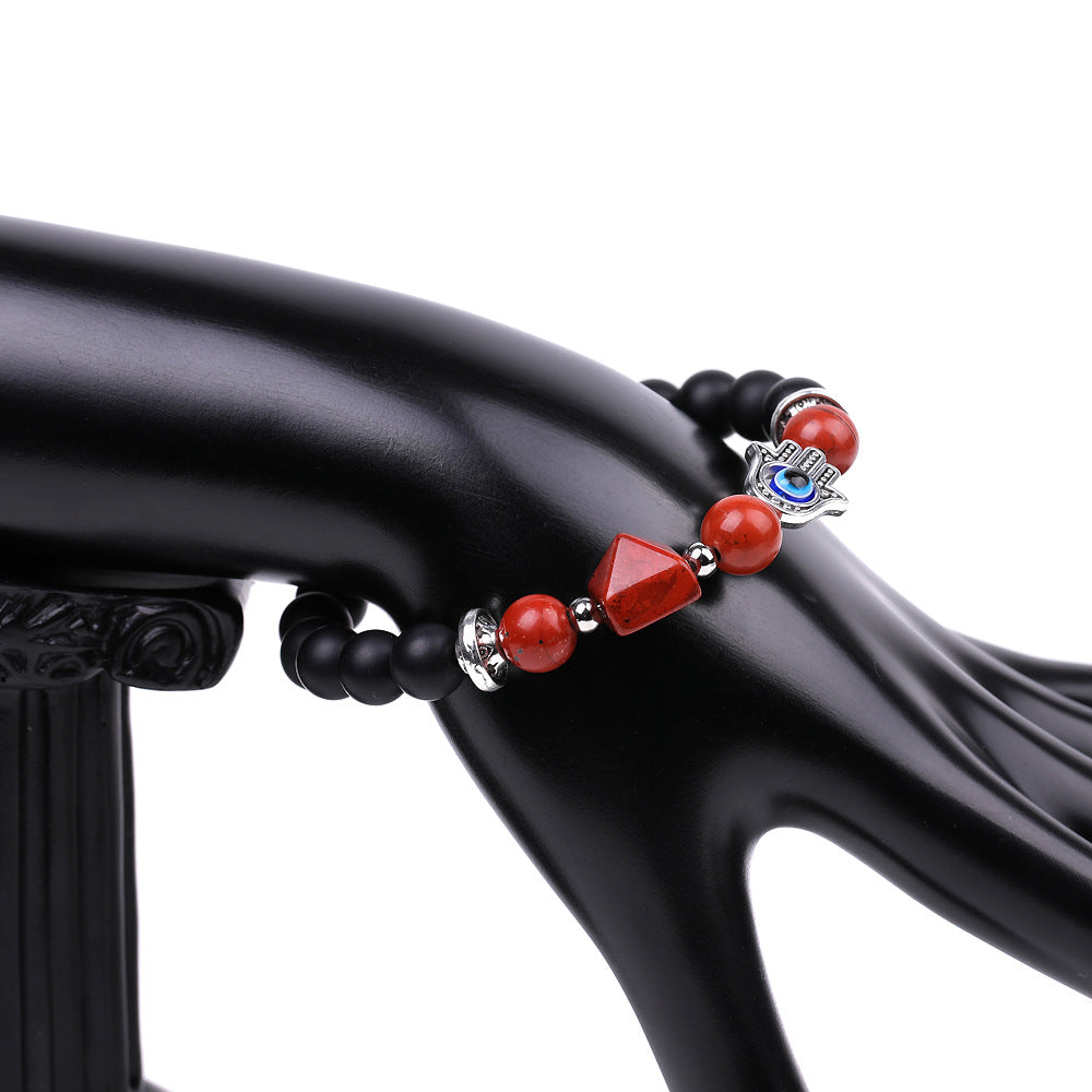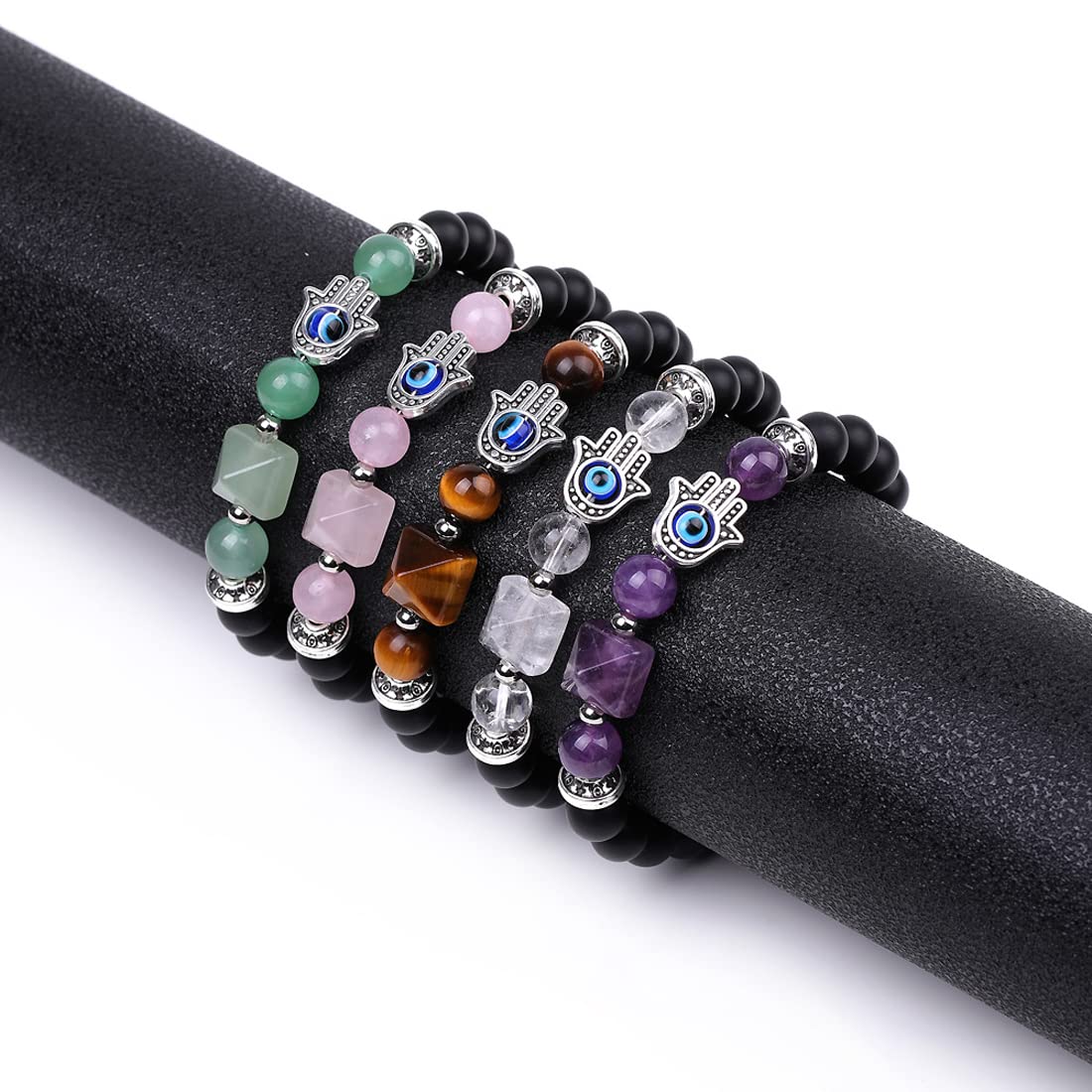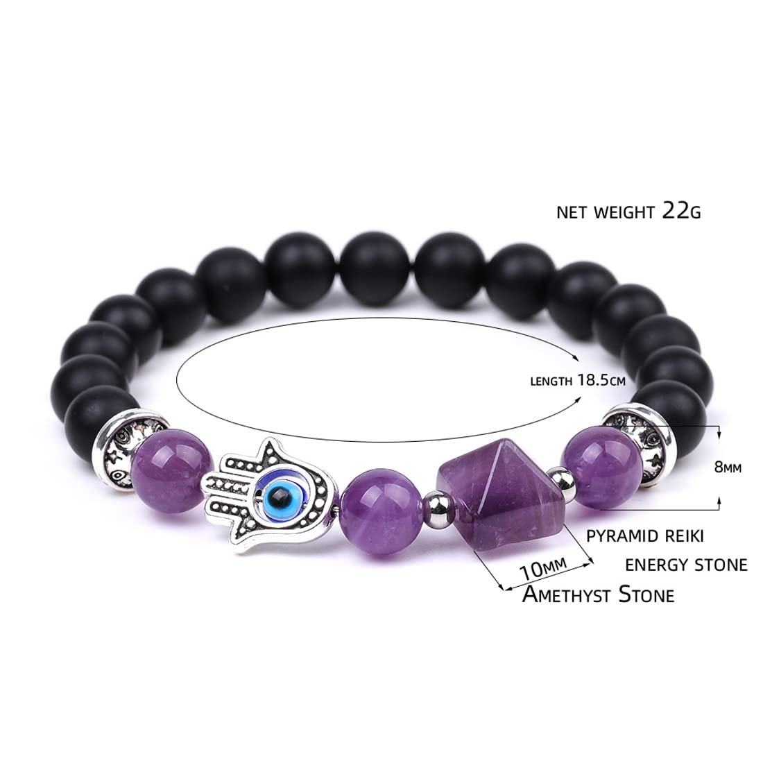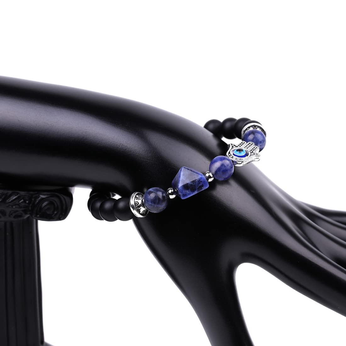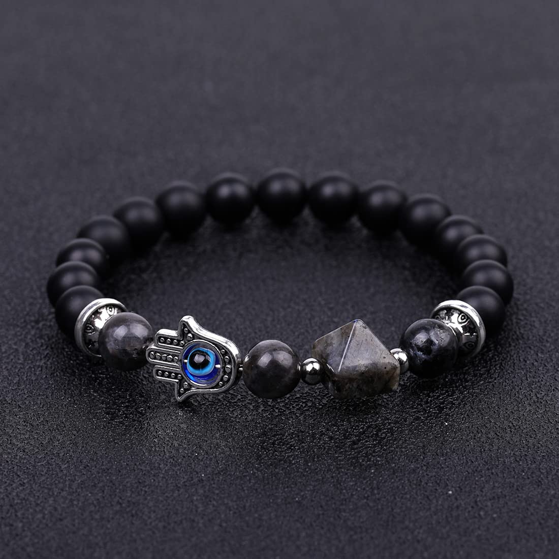 Rockyu ブレスレット レディース メンズ 天然石 ハムサの手 数珠 オニキス パワーストーン ビーズブレスレット 誕生日や記念日に