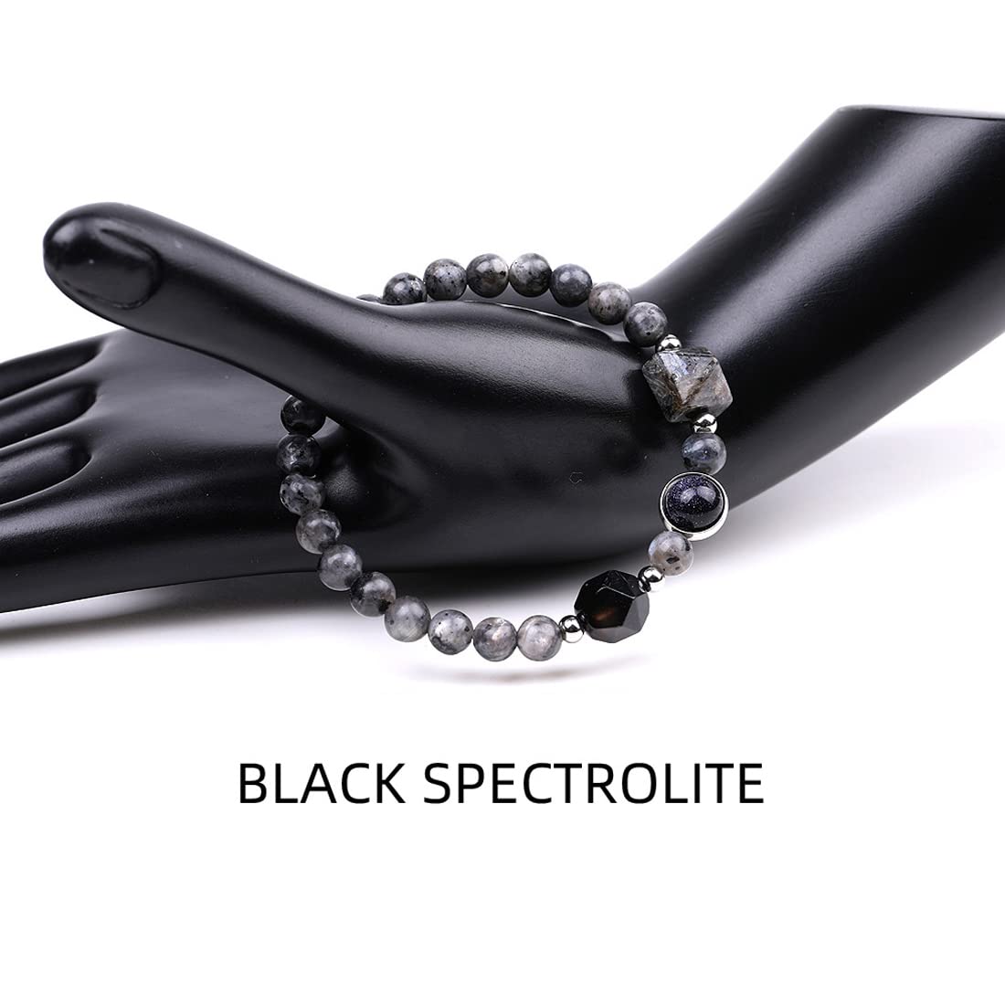 パワーも、おしゃれも、欲張りたいあなたに。Rockyuの天然石ブレスレットは、個性豊かな8種の天然石ビーズを贅沢に使用し、中央には艶めくオーバルストーン、両端には神秘的なピラミッド型ビーズを配置した唯一無二のデザイン。