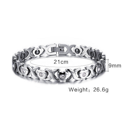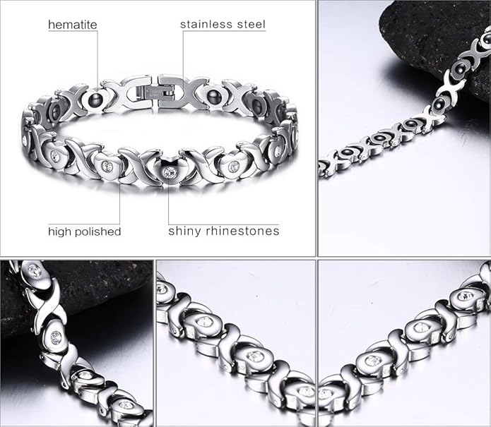 Rockyu ブレスレット レディース 磁気 ゲルマニウム ステンレス シルバーチェーン おしゃれ