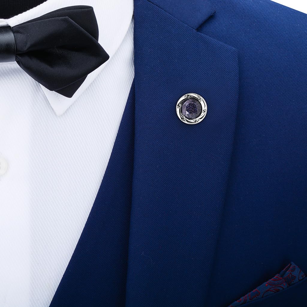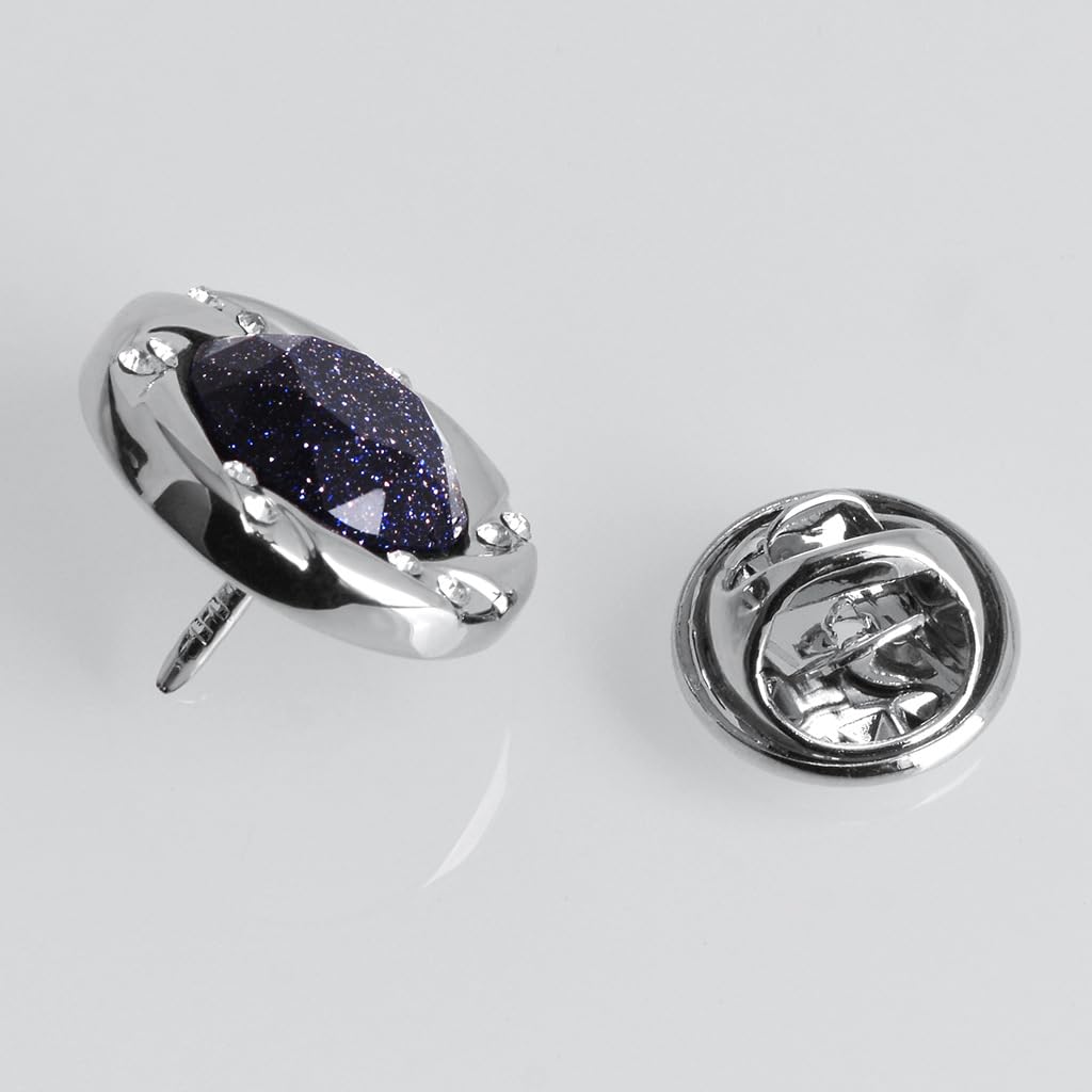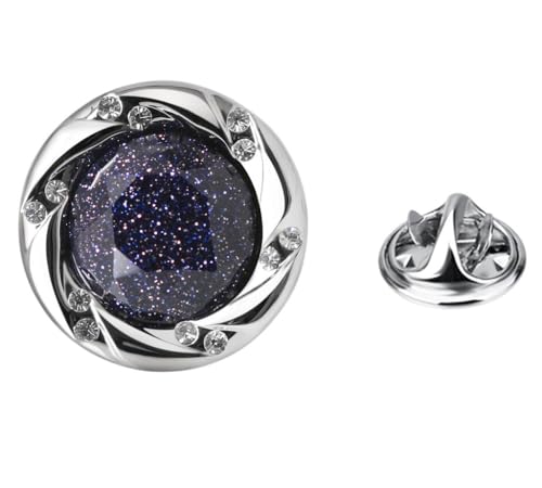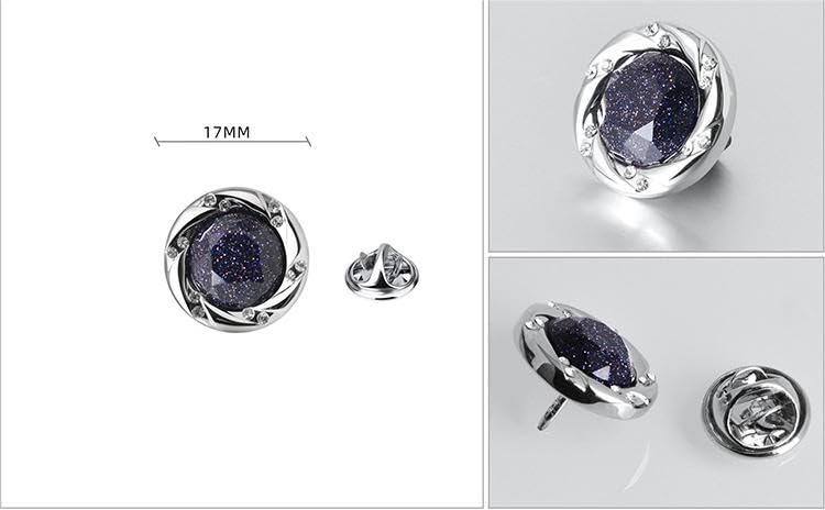 Rockyu ブローチ メンズ ブルーサンドストーン ステンレス ラウンド スーツピン 17mm フォーマル 結婚式 ビジネス