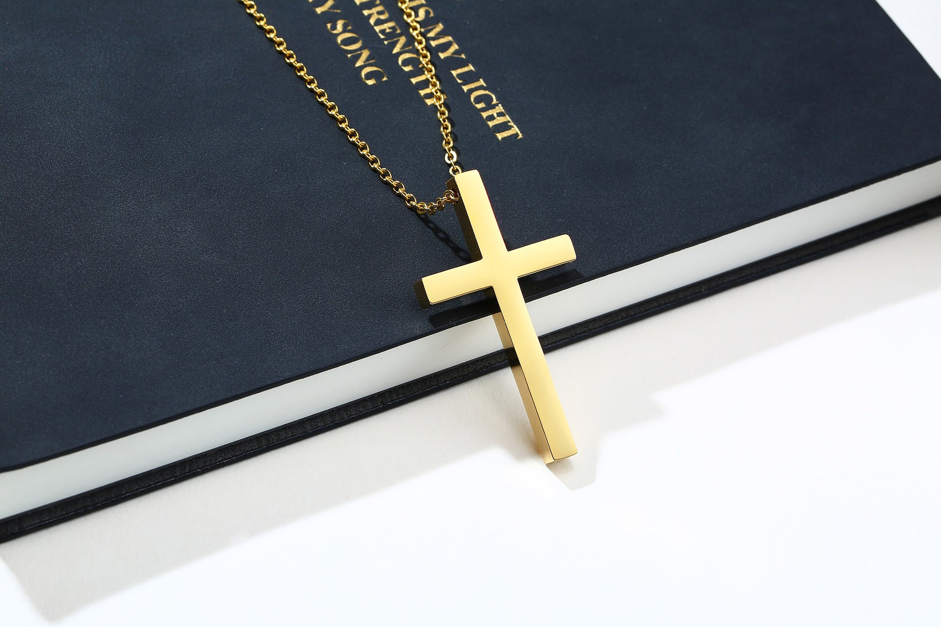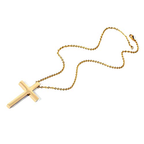 Rockyu チタン クロスネックレス メンズ ゴールド 十字架ペンダント 金属アレルギー対応 54mm×30mm