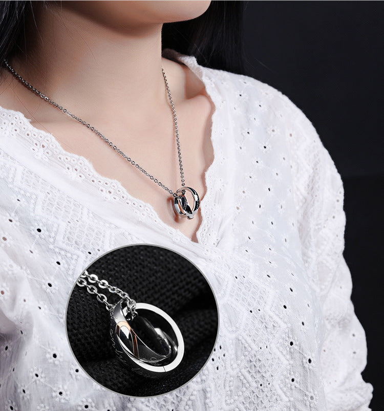 Rockyu のペアネックレスは、シンプルながらも洗練されたデザインで、恋人同士や夫婦の絆をさりげなく表現できるアクセサリーです。二重のリングモチーフは「永遠のつながり」をイメージし、胸元でやさしく輝きます。