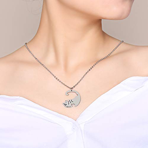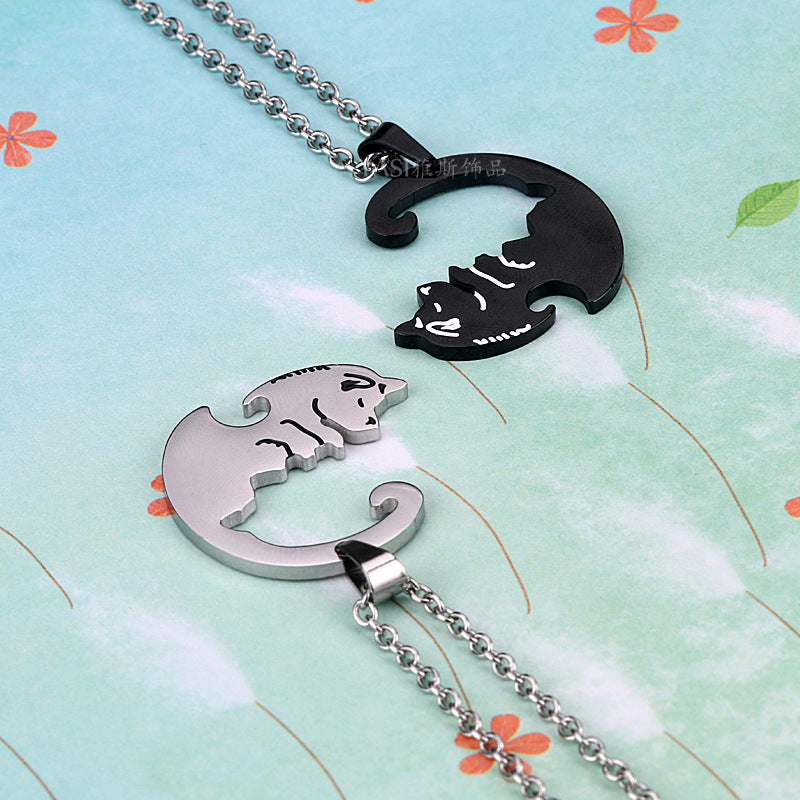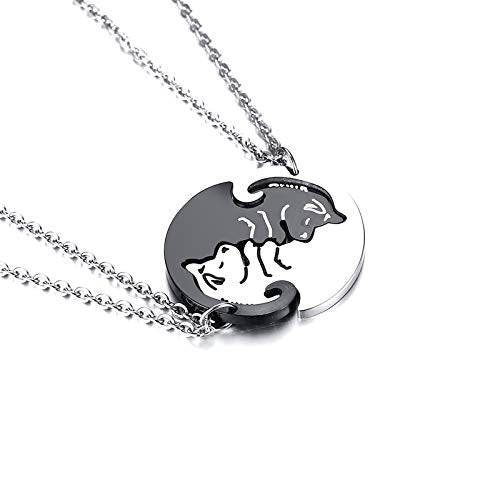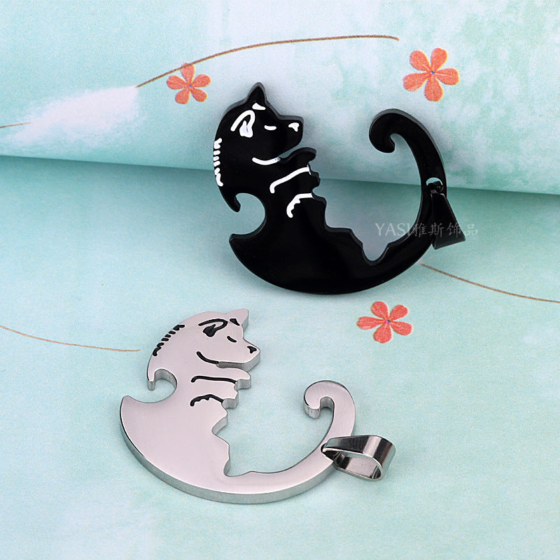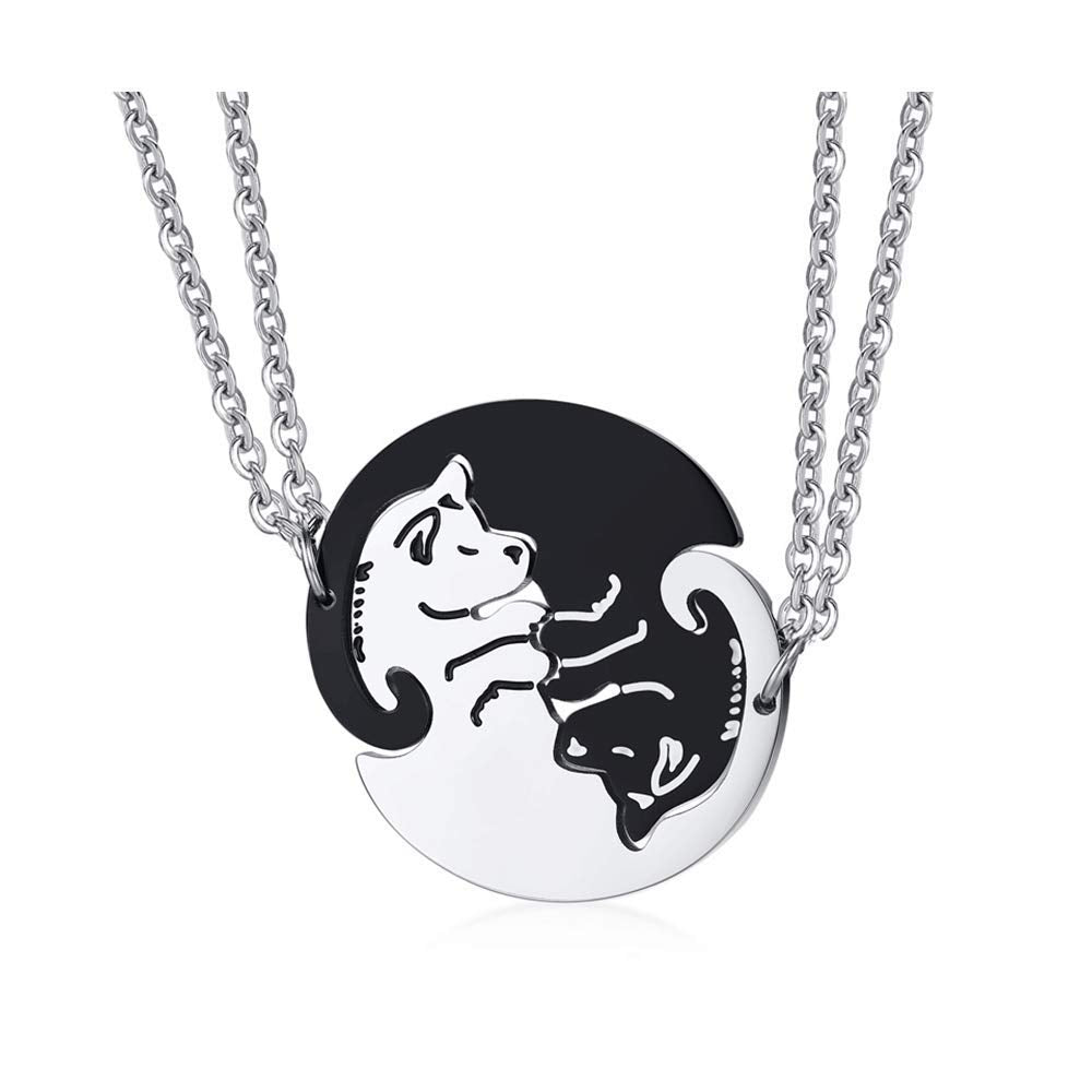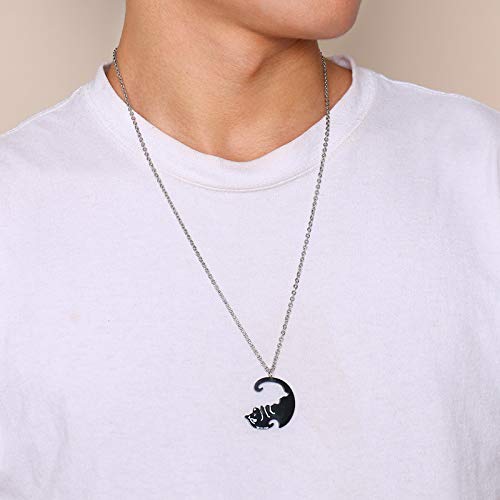 Rockyu ペアネックレス 犬モチーフ YinYangデザイン ブラック&シルバー ステンレス製 カップル用
