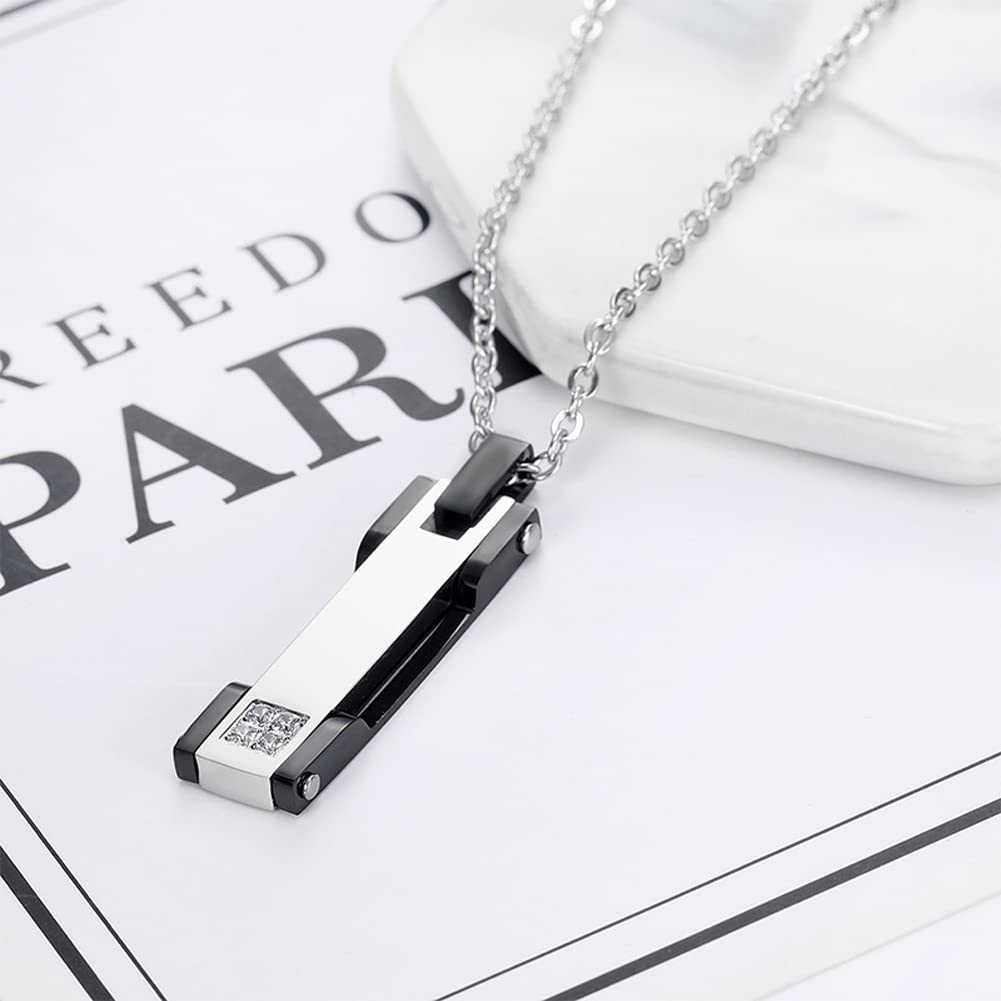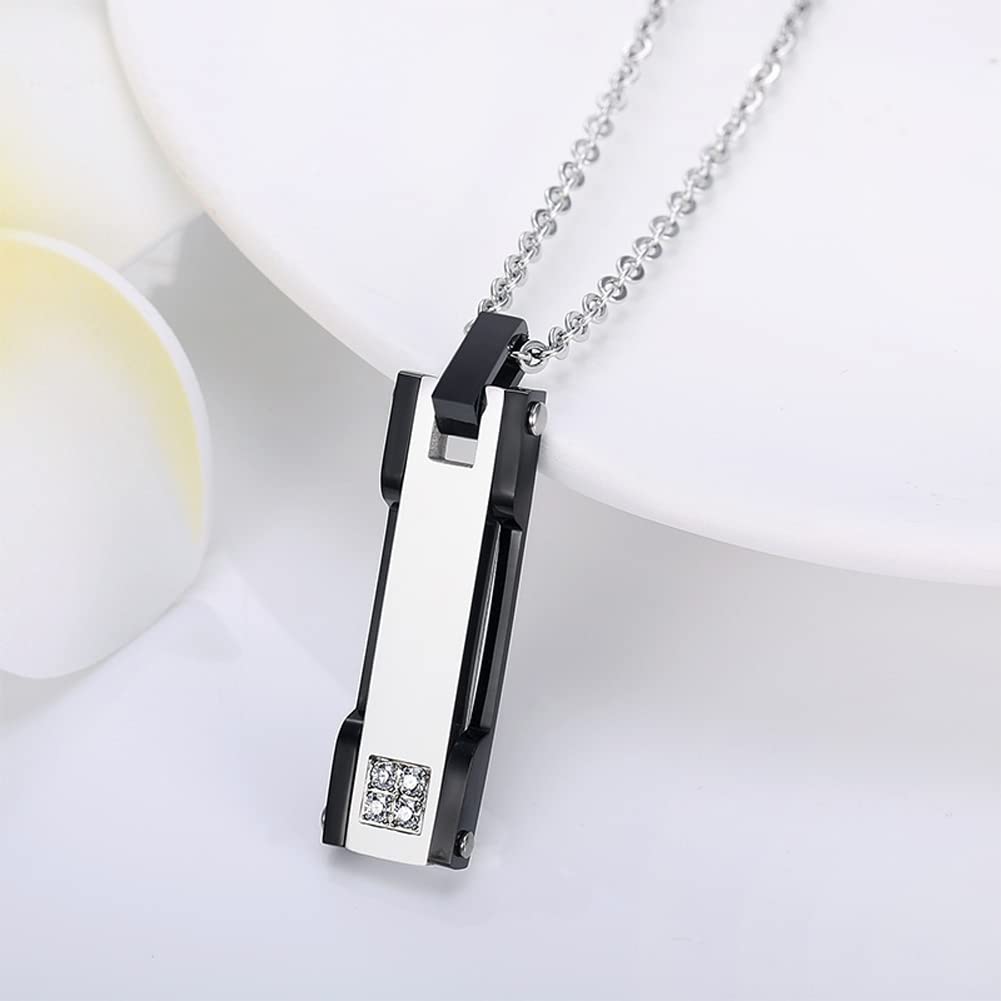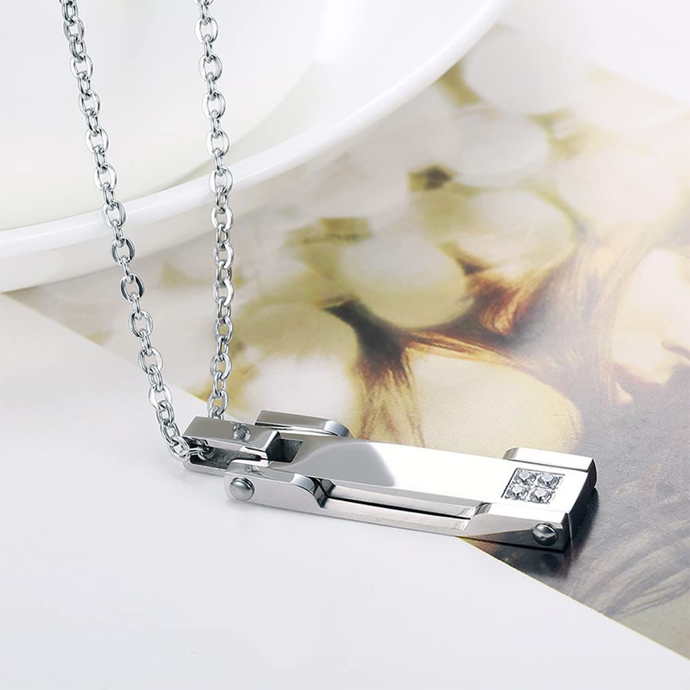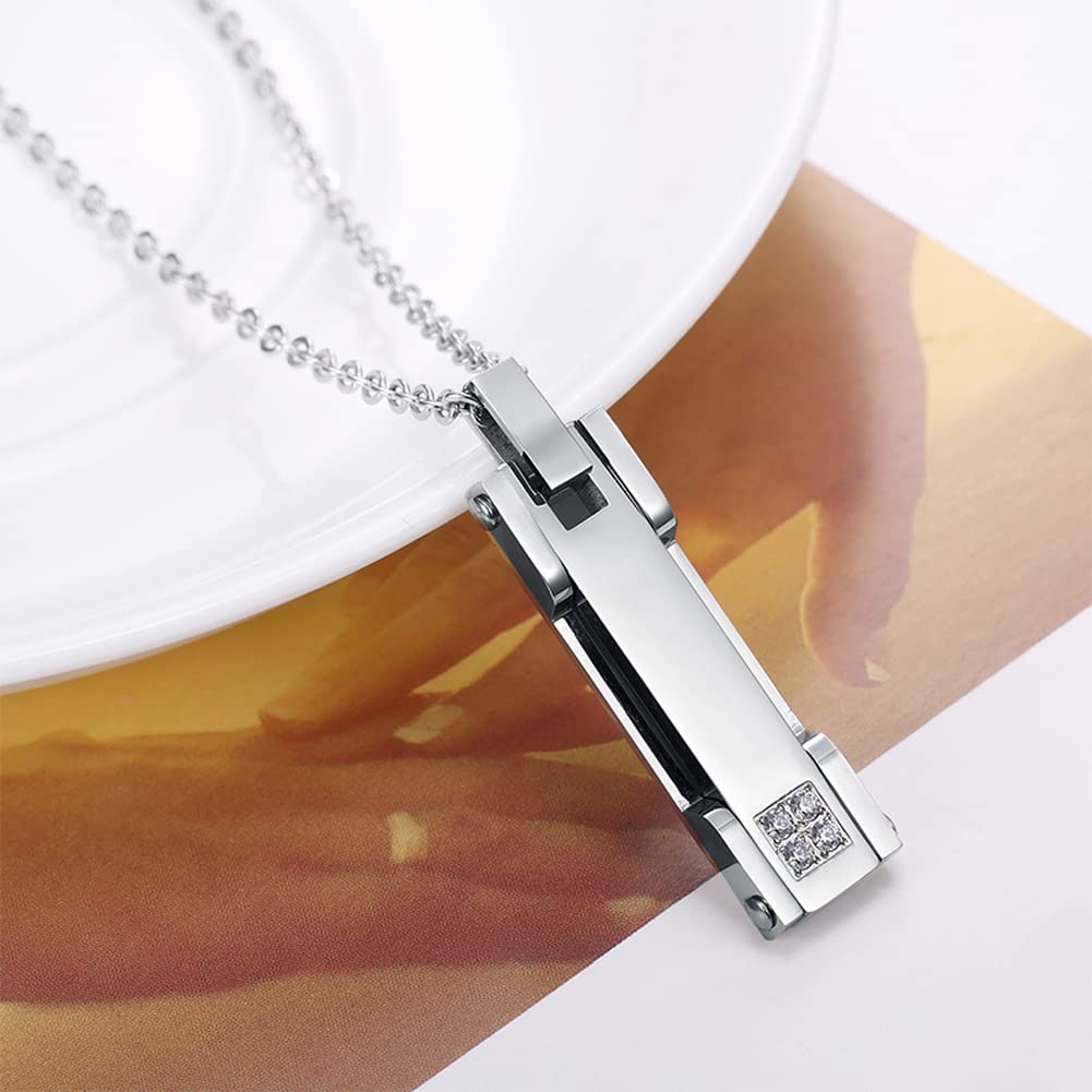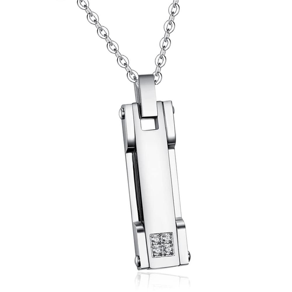 Rockyu ペアネックレス ステンレス メンズ レディース シルバー ジルコニア スティックペンダント