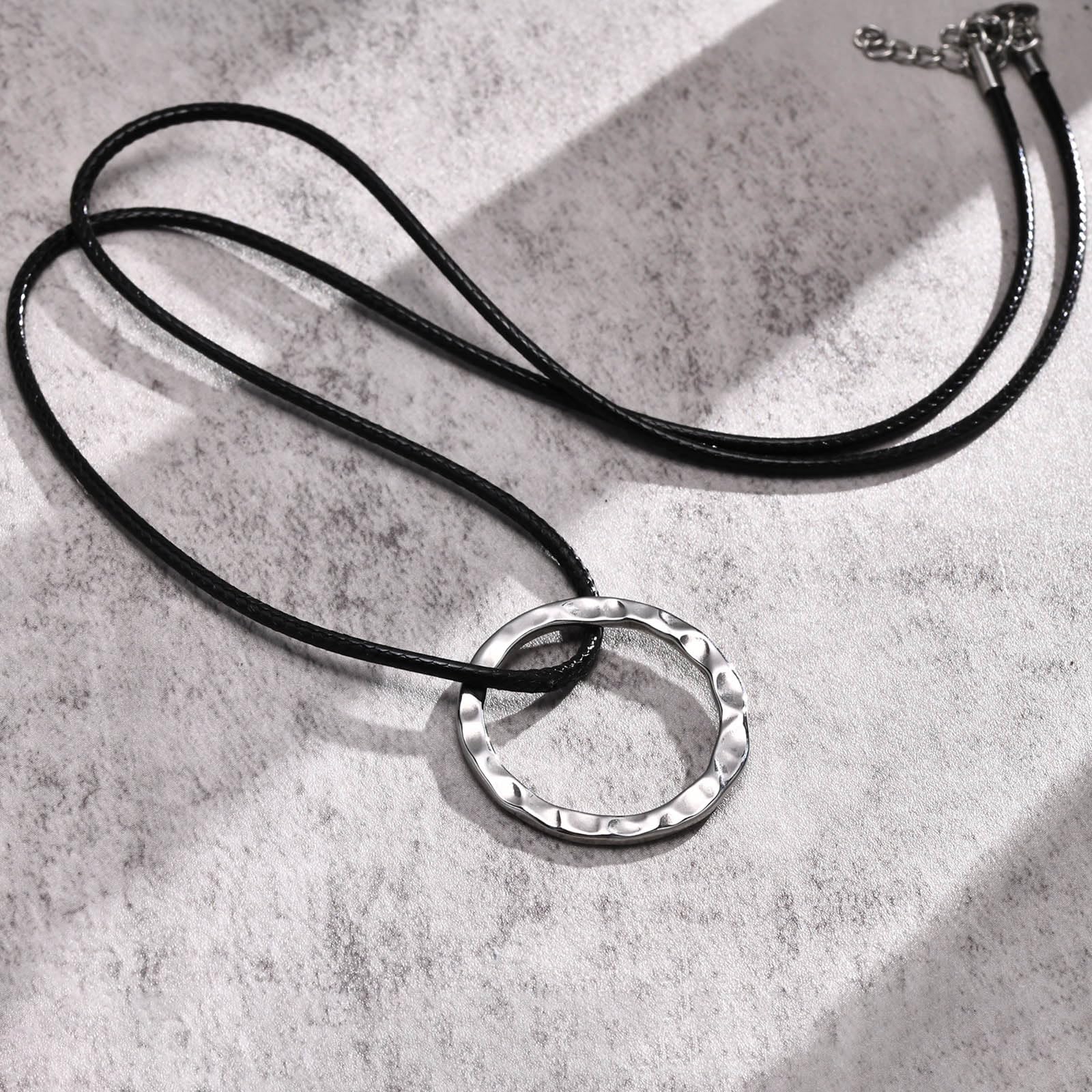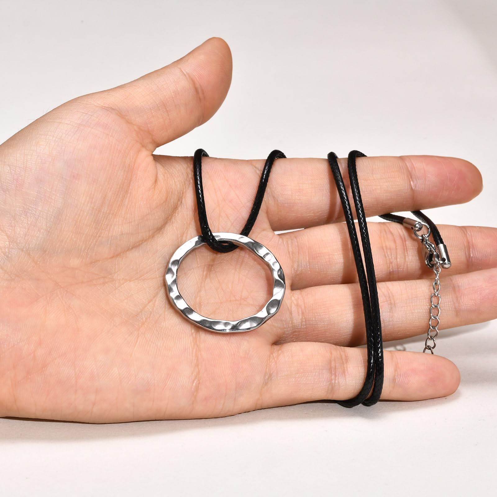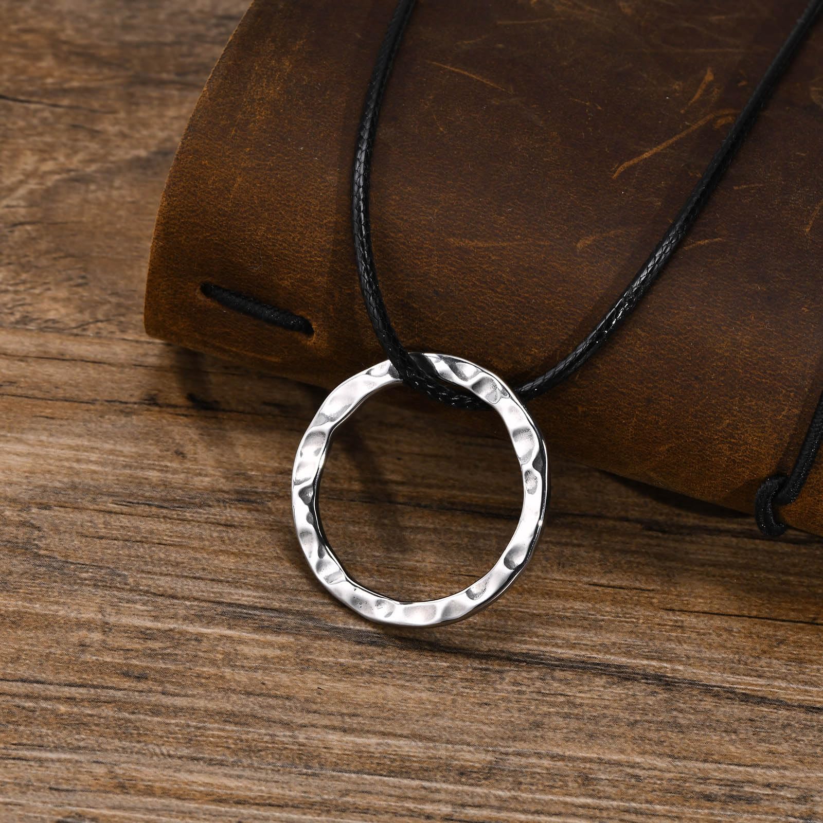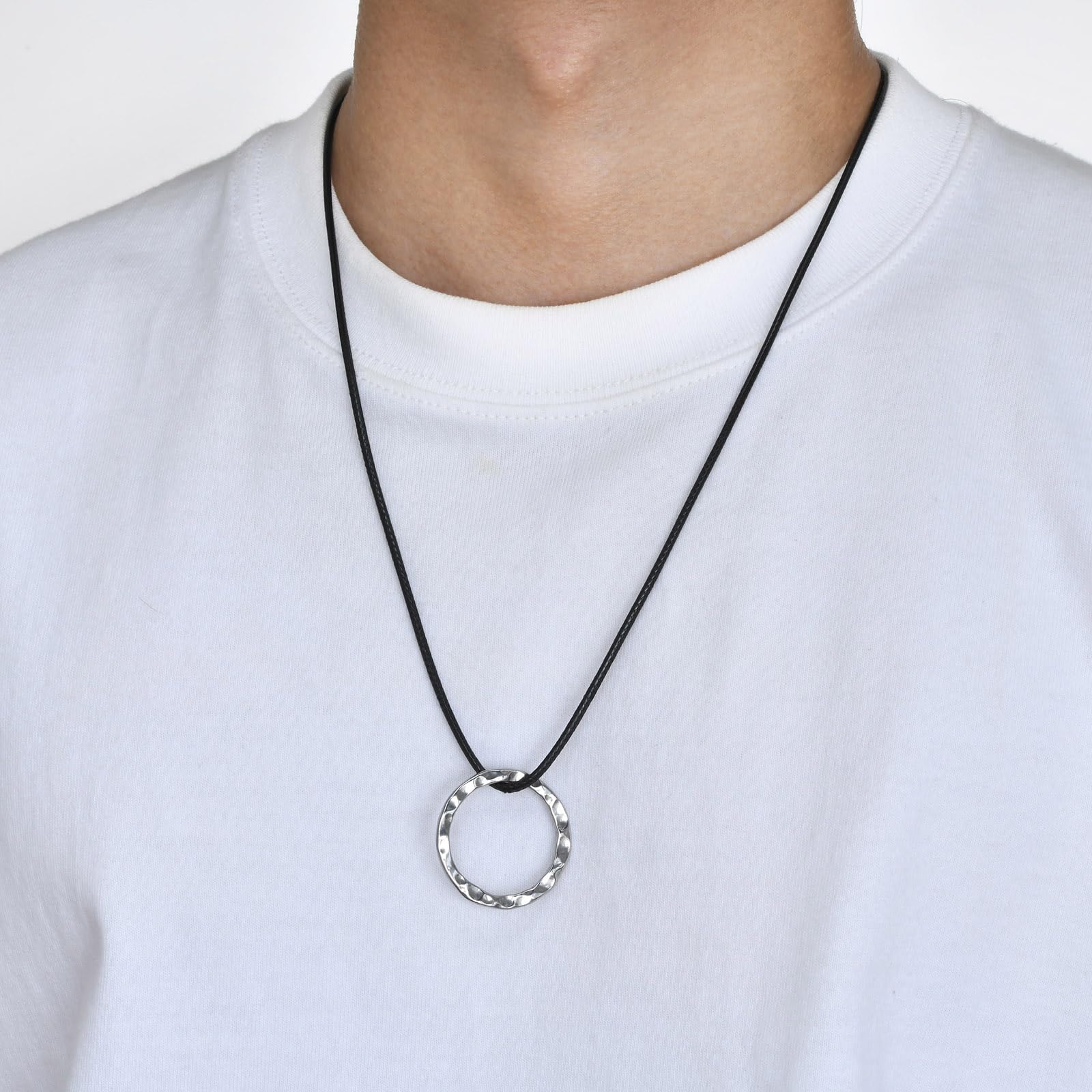 Rockyu ペアネックレス メンズ レディース リングデザイン 革紐&チェーン 金属アレルギー対応