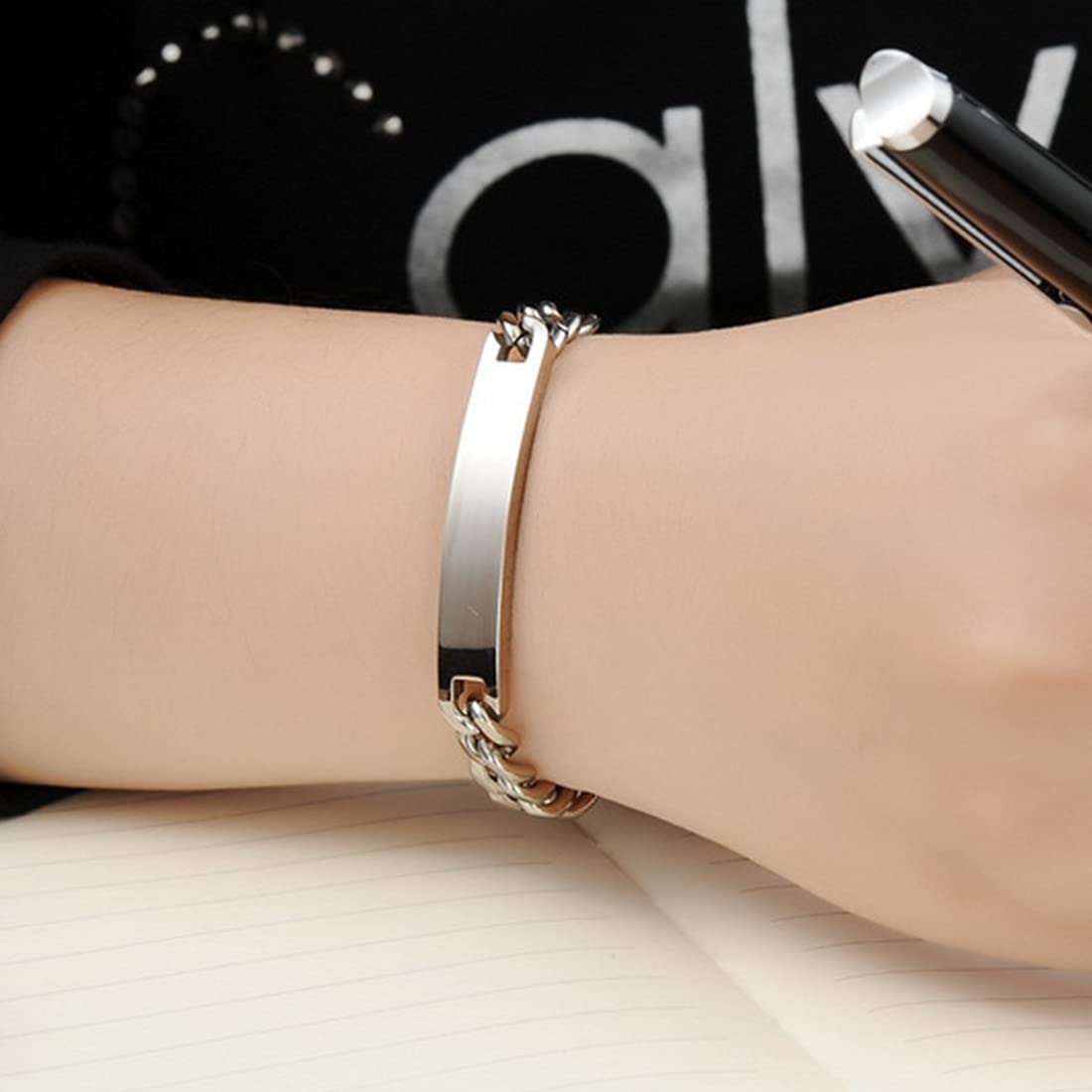 Rockyu カップルブレスレット|ローズゴールド&シルバーチェーン|ペアアクセサリー
