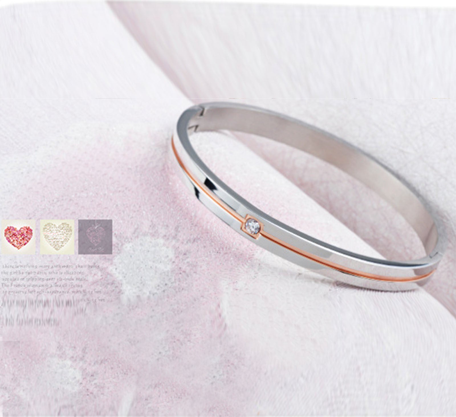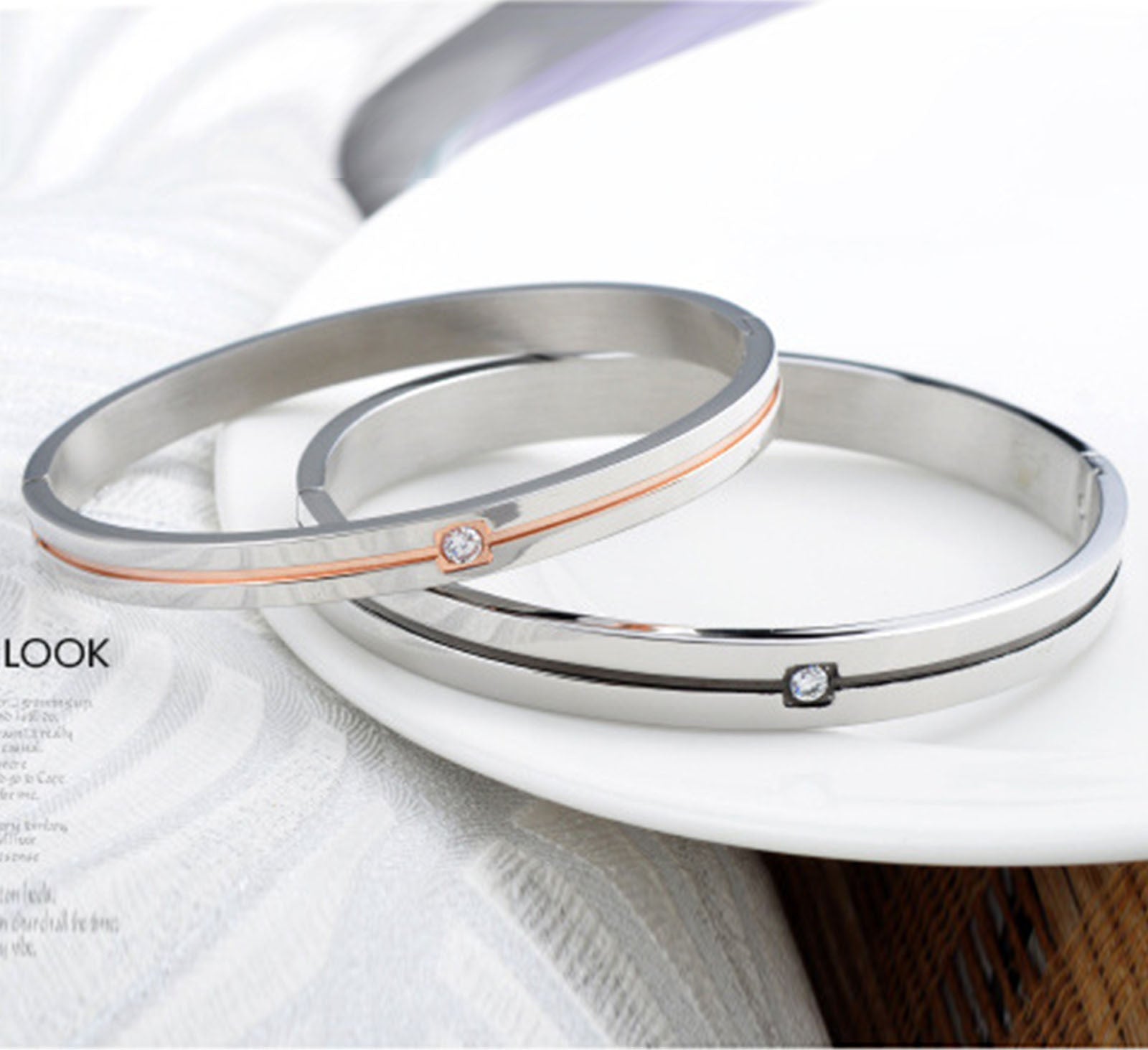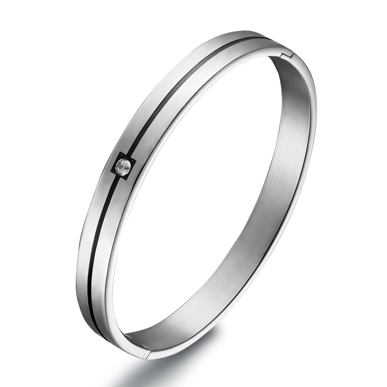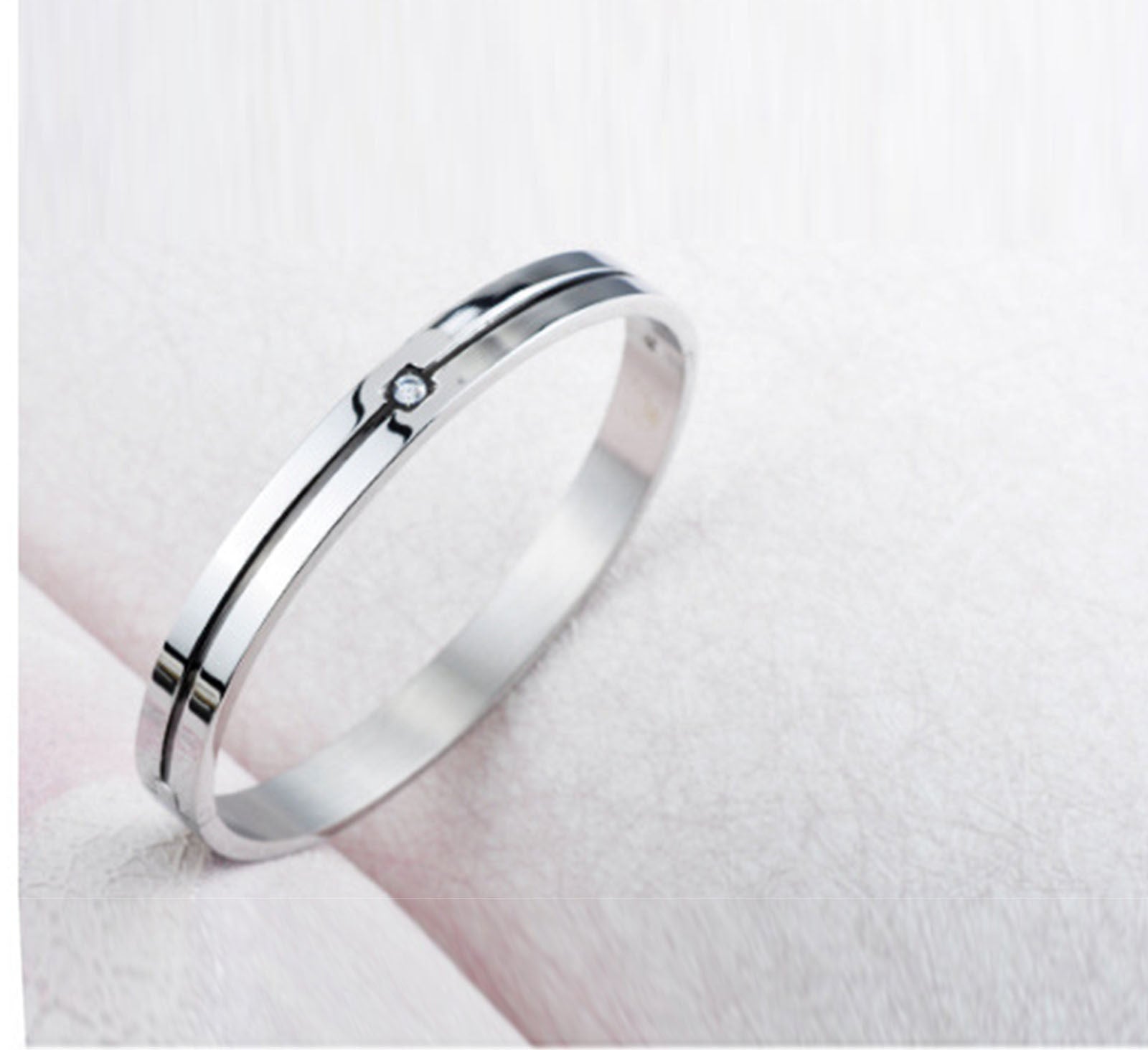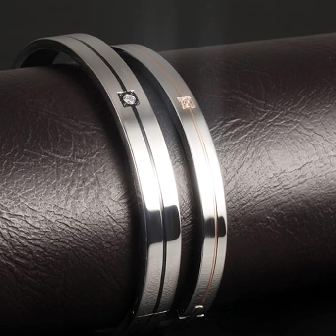 Rockyu ペアブレスレット メンズ レディース チタン製 ダイヤ付き シルバー/ブラック シンプル バングル 幅8mm