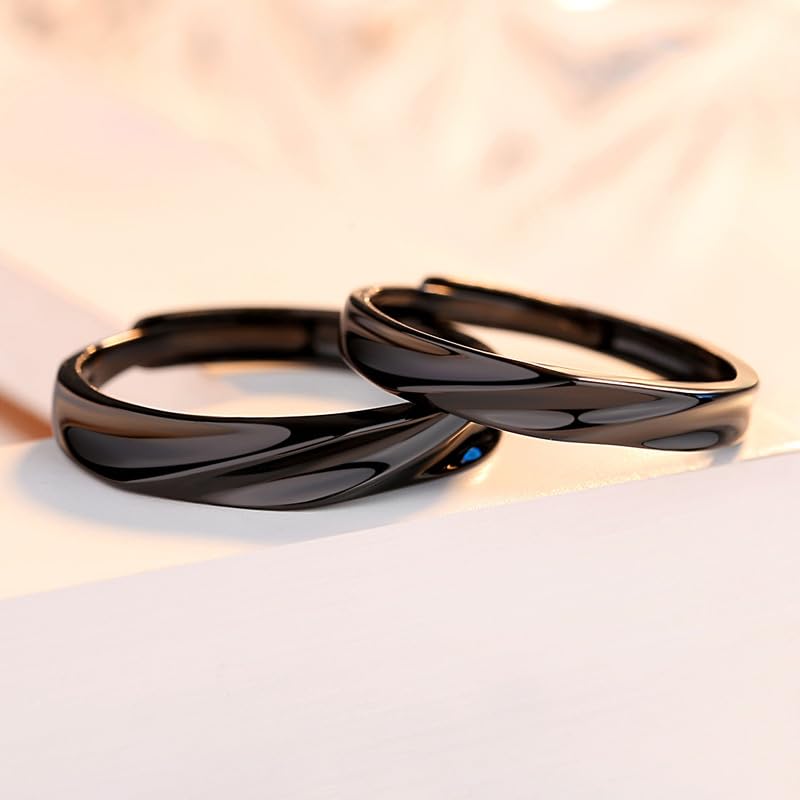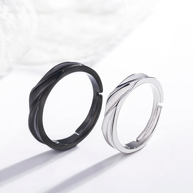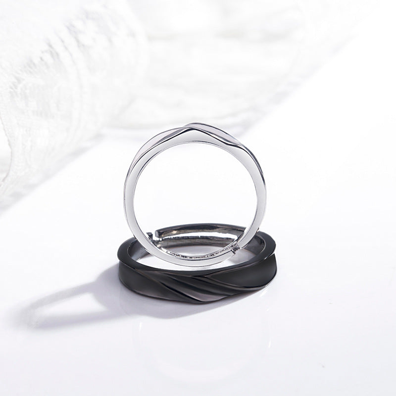ペアリング|シルバー925&ブラック フリーサイズ カップルリング 恋人へのプレゼントに