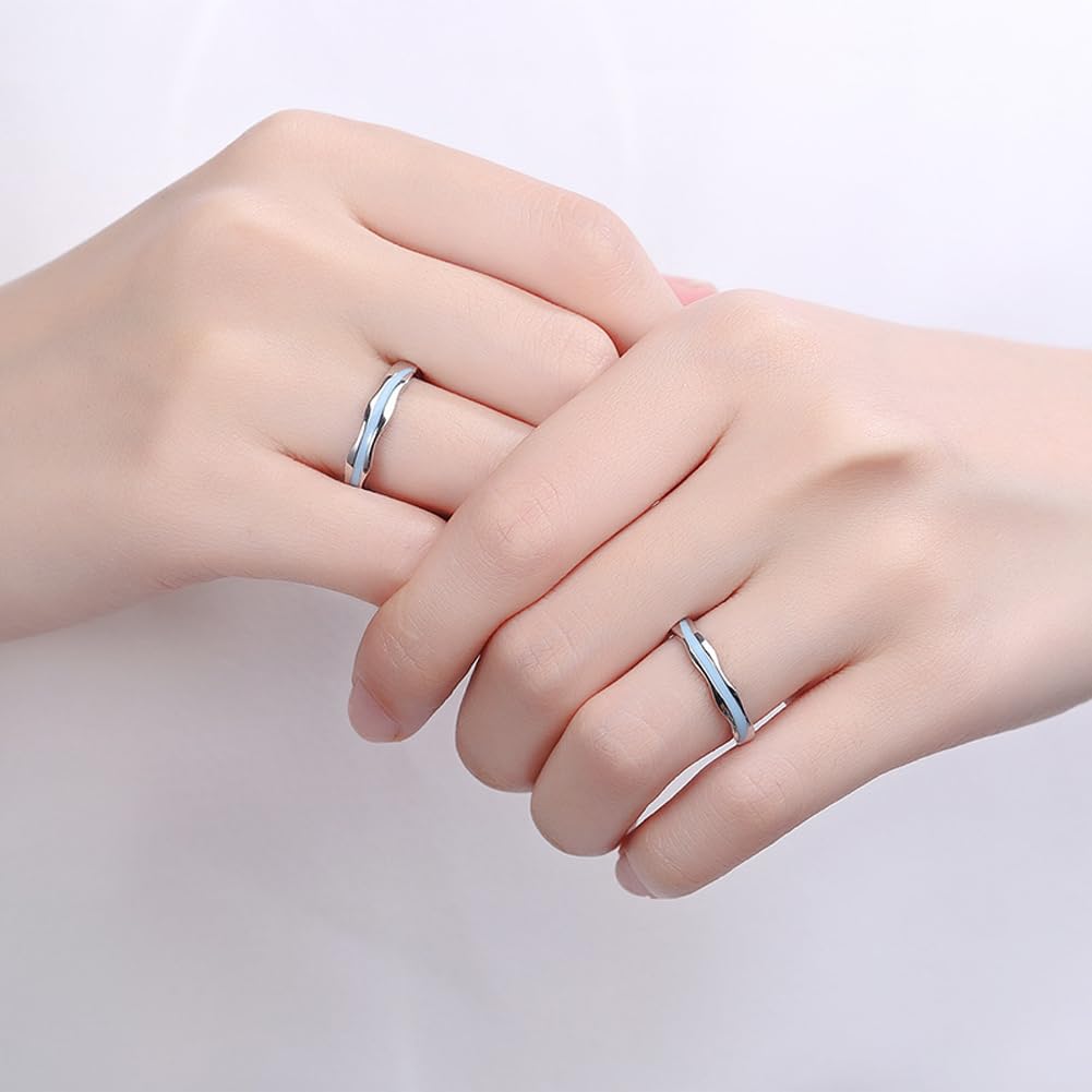 寄せては返す波のように、永遠に続く絆を象った――Rockyuの津波モチーフペアリングは、シルバー925と爽やかなブルーラインの美しいコントラストが魅力。流れるような曲線デザインは、見る角度によって表情を変え、二人の関係を象徴するような奥行きを感じさせます。スターリングシルバーを使用し、変色や錆びに強く、金属アレルギーにも配慮。フリーサイズ仕様で指のサイズに合わせて簡単に調整でき、男女問わず快適な着け心地を実現します。2個セットなので、恋人や夫婦のペアリングとしてはもちろん、親友同士のお揃いアクセサリーにもぴったり。シンプルでありながら存在感のあるデザインは、日常使いはもちろん、バレンタインデーや記念日、誕生日など特別なギフトにも最適です。Rockyuが贈るこのリングは、指先に寄り添い、時を超えて絆を見守ります。