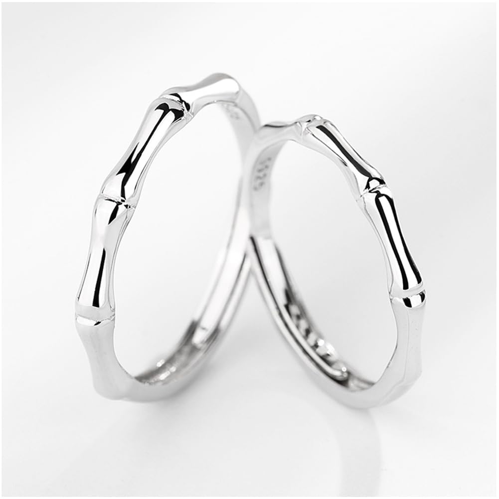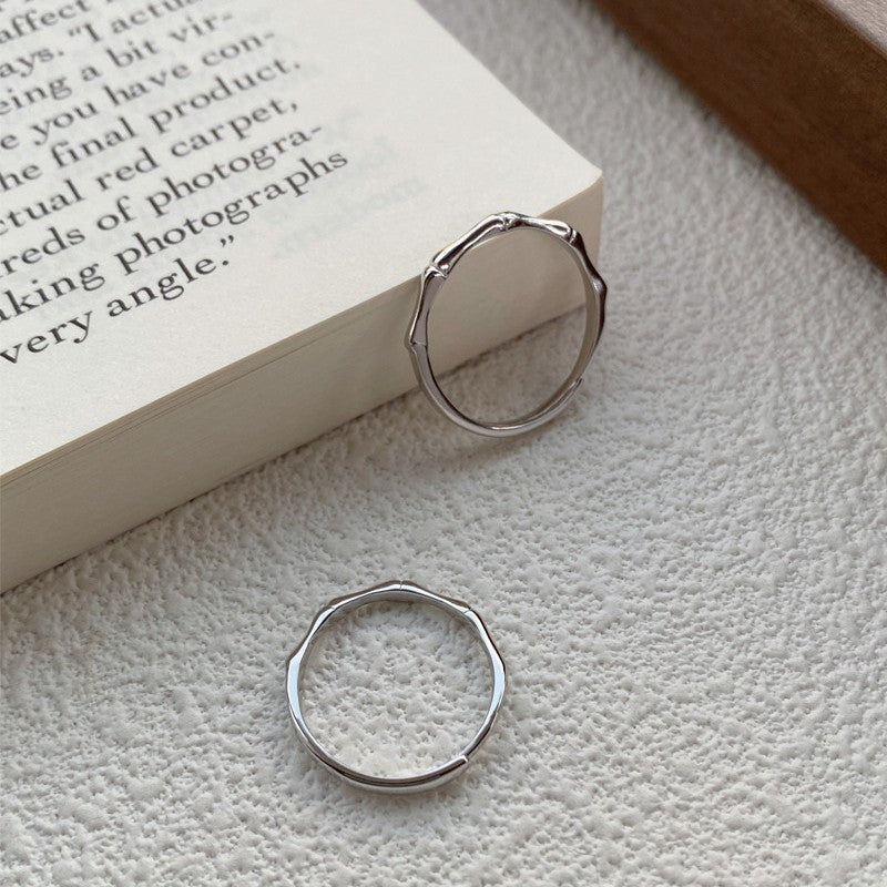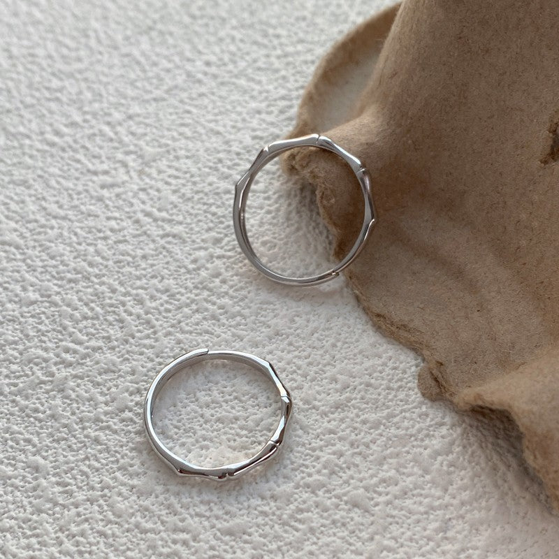 Rockyu ペアリング 竹節デザイン フリーサイズ 2個セット シルバー925 スターリングシルバー