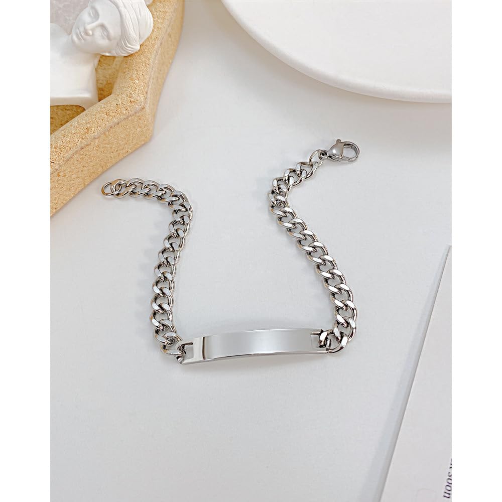 Rockyu のペアブレスレットは、シンプルかつスタイリッシュなデザインでカップルに大人気のアクセサリー。幅44mmの長方形プレートが美しく輝き、シンプルながら存在感のある仕上がりになっています。